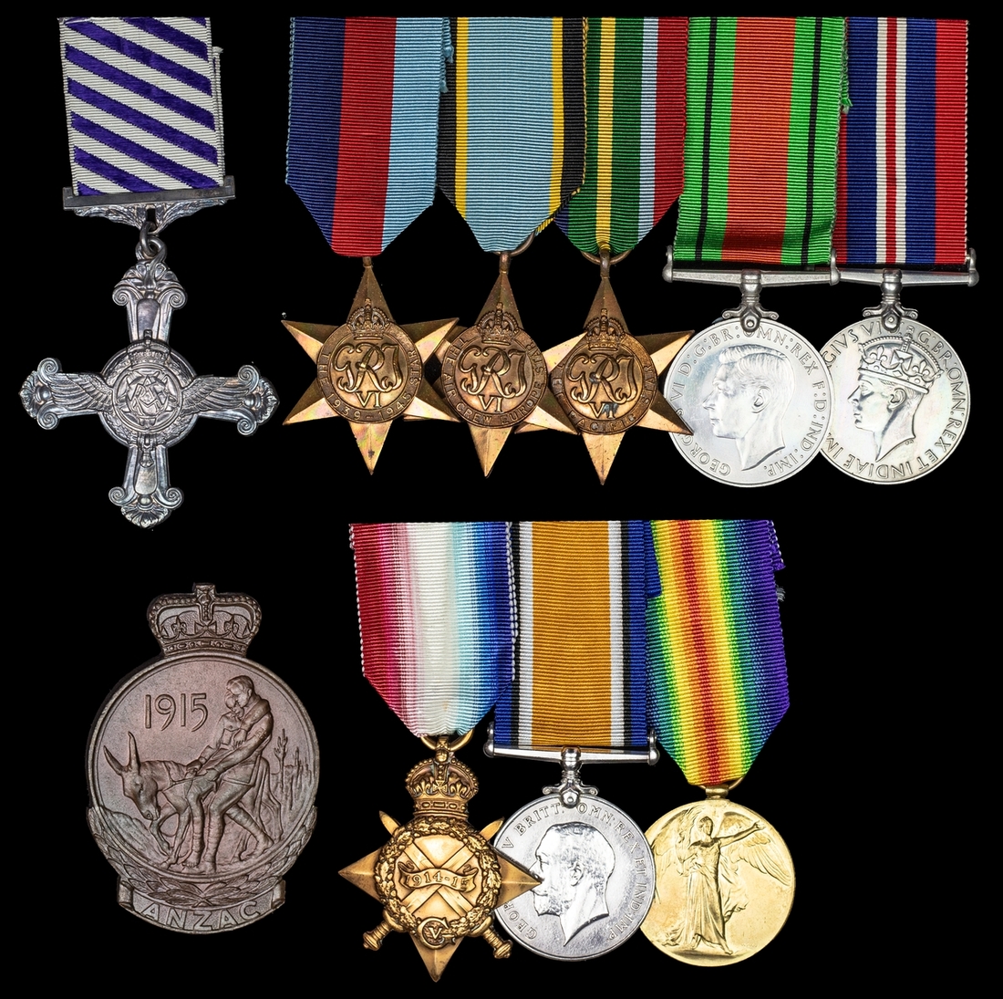 1914-15 Star (6/1032 L./Cpl. C. P. Greaves, N.Z.E.F.); British War Medal 1914-20 (6/1032 L./Cpl. C. P. Greaves, N.Z.E.F.); Victory Medal 1914-19 (6/1032 L./C. Charles P. Greaves, N.Z.E.F.), together with his A.N.Z.A.C. 1915 medallion, engraved 'C. P. Greaves', in its fitted case of issue, with related lapel badge, the reverse numbered '6/1032', and his Silver War Badge, the reverse numbered 'N.Z. 882', polished and contact marks but generally very fine (6)