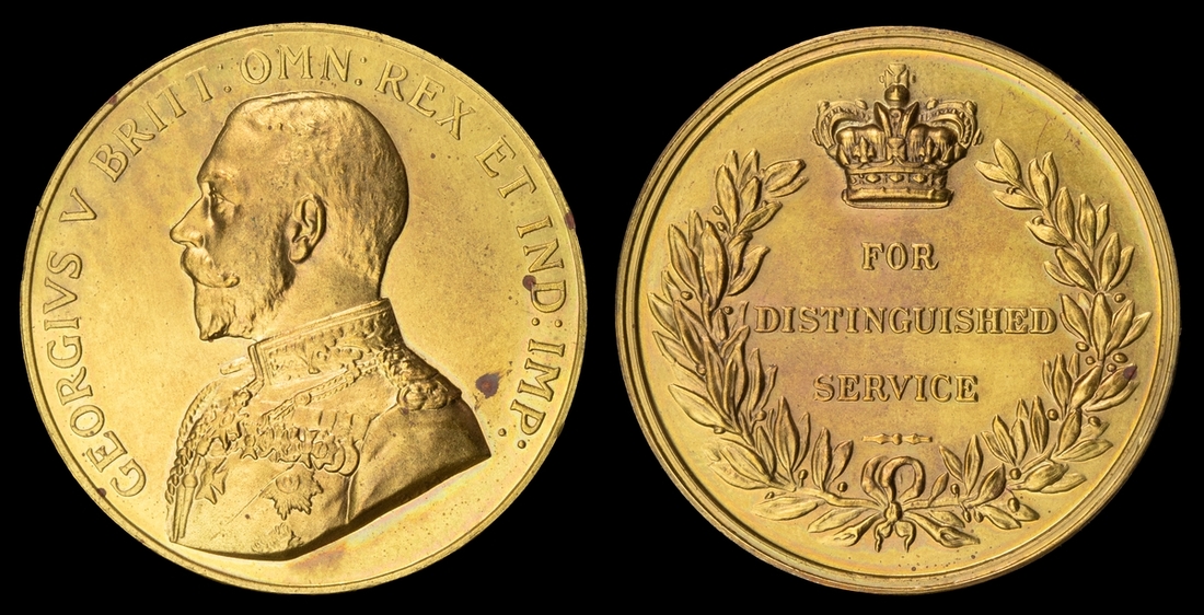 Distinguished Service Medal, G.V.R., a possible trial piece or specimen in gilt bronze, 25.53g, unnamed as issued, a couple of spots of gilt absent, otherwise good very fine and scarce