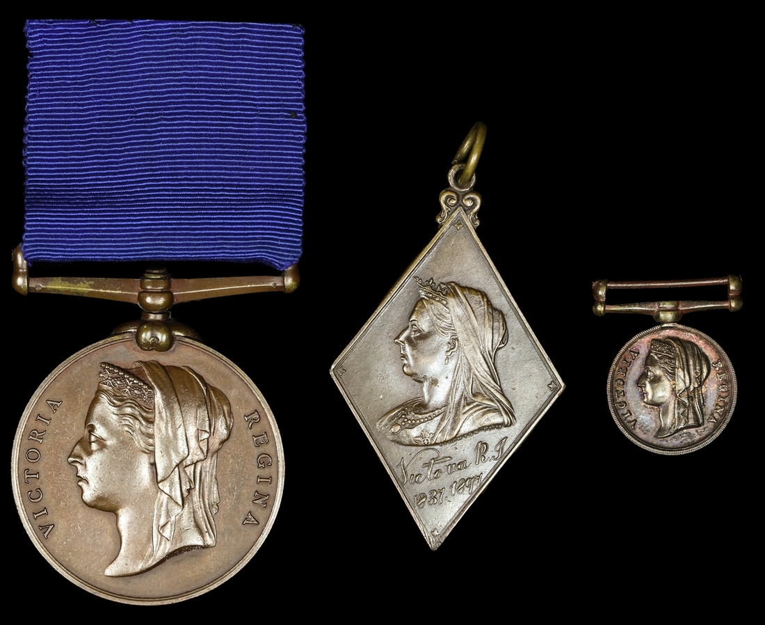 Sold together with a miniature Jubilee 1897, Metropolitan Police issue medal and a Children's Fete in Glasgow 1897 Jubilee medal.