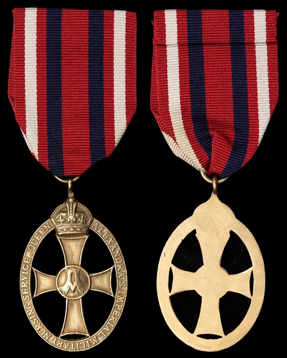 This pattern of badge was in use from 1902 until 1949, issued in silver for Sisters. The rarer bronze version is possibly for Senior Nurses and male staff attached to Q.A.I.M.N.S..