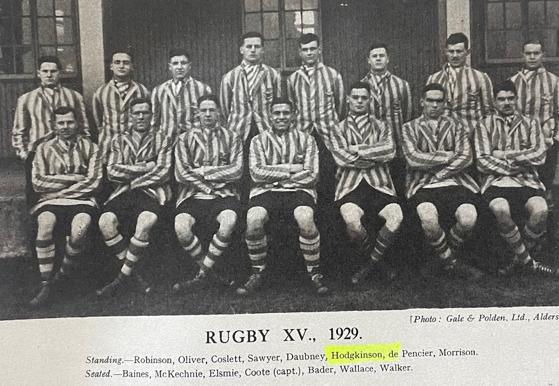 Further showing his skills on the sports field, Hodgkinson earned full Colours for rugby, cricket and athletics, besides being noted as a 'promising pilot'. He was tragically killed in an aircraft crash at Cranwell on 1 April 1930 in a DH9a and his loss was lamented by all who knew him.
