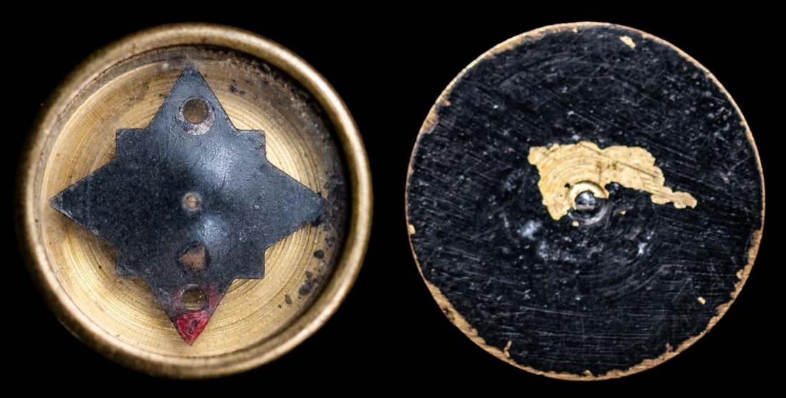 A Second World War Escape Compass, the standard half inch escape compass, developed by Christopher Clayton Hutton at MI9, black painted cylindrical brass case/body with a magnetized 'star' rotor and luminous dots to indicate North and South, glass cover with bevelled edge, some paint loss but in very good working condition