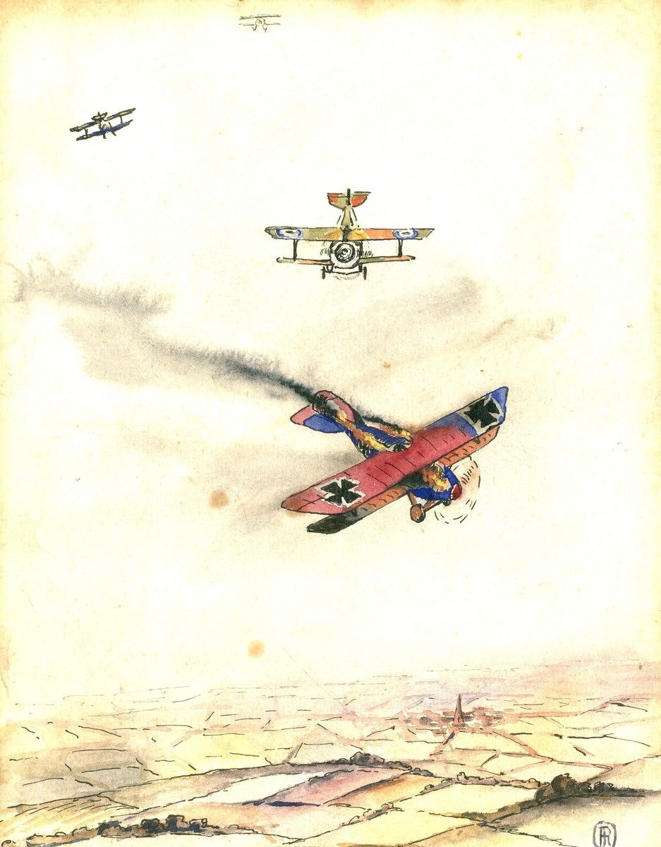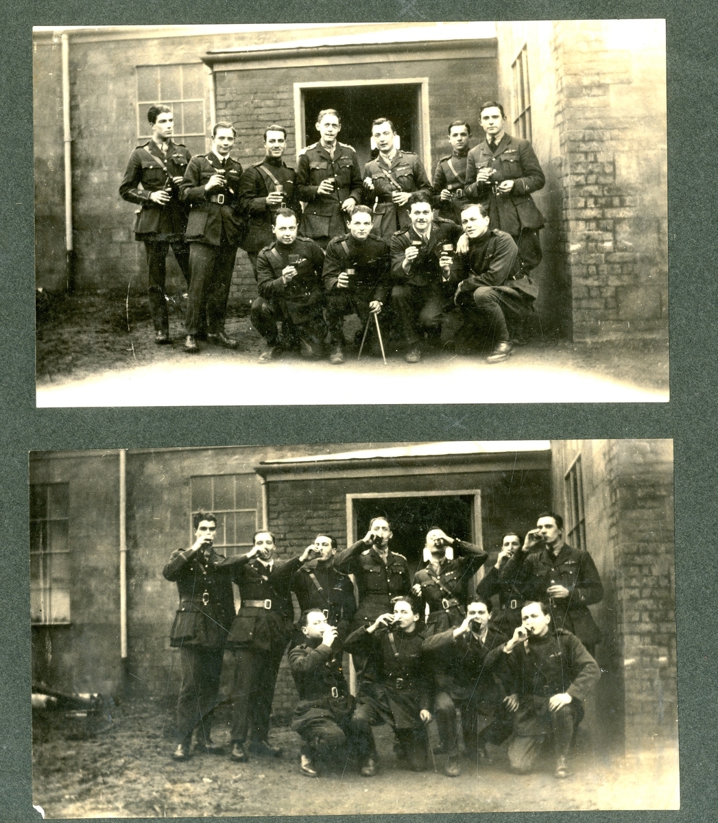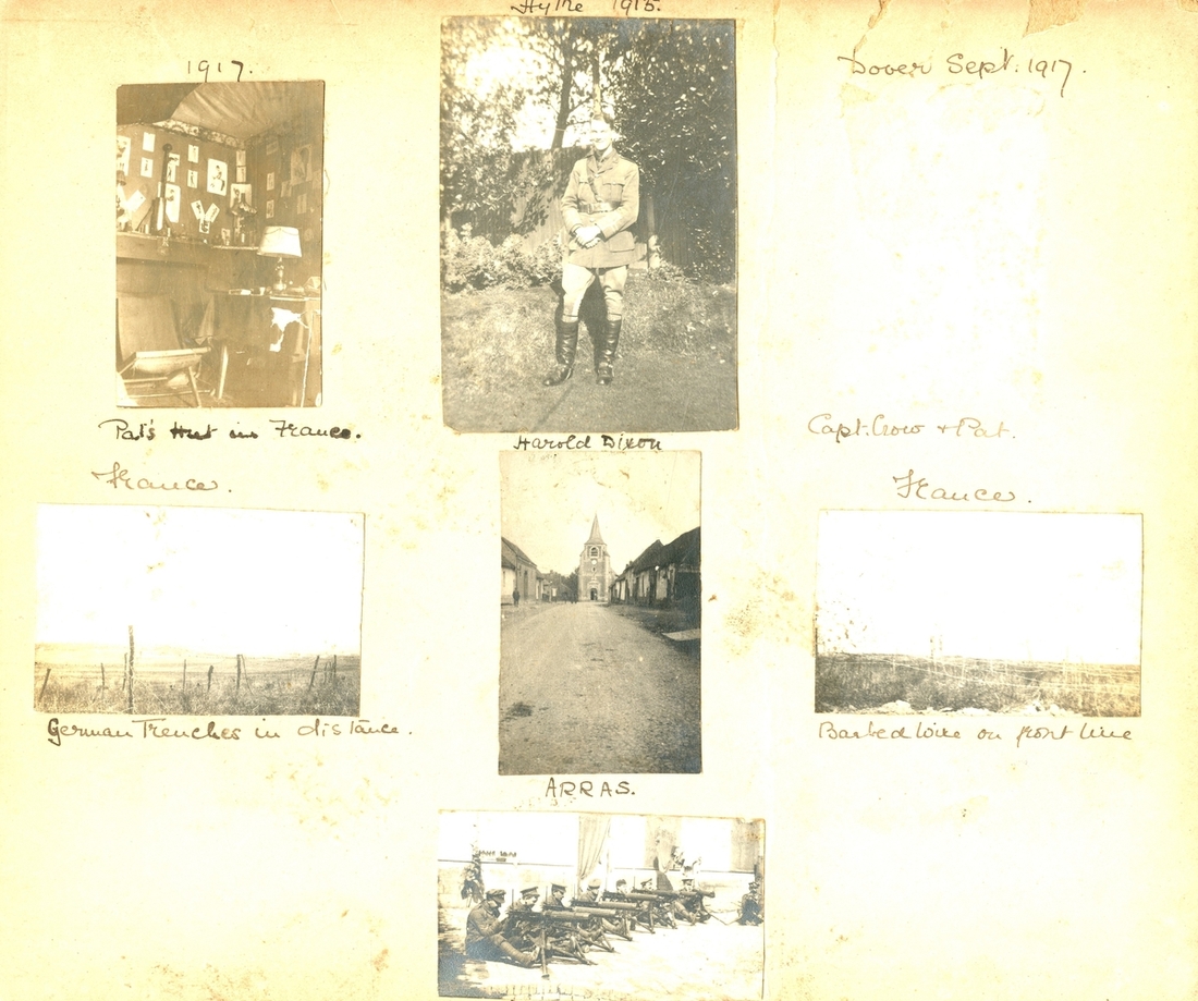 Comprising a combination of larger size and lesser snaps to include 8 pages from a photograph album from 1911 - 1918 the owner having originally having lived at Hythe, Kent. To include a combination of civilian and military related photographs to include the Mayor of Hythe entertaining wounded soldiers at the Imperial Hotel along with other photographs from Rouen in 1915 and the Bevan Military Hospital at Sandgate, Kent, with several photographs from the 1930's and later. Together with a painting of a German biplane being shot down by a British aeroplane 22.9cm x 17.8cm,