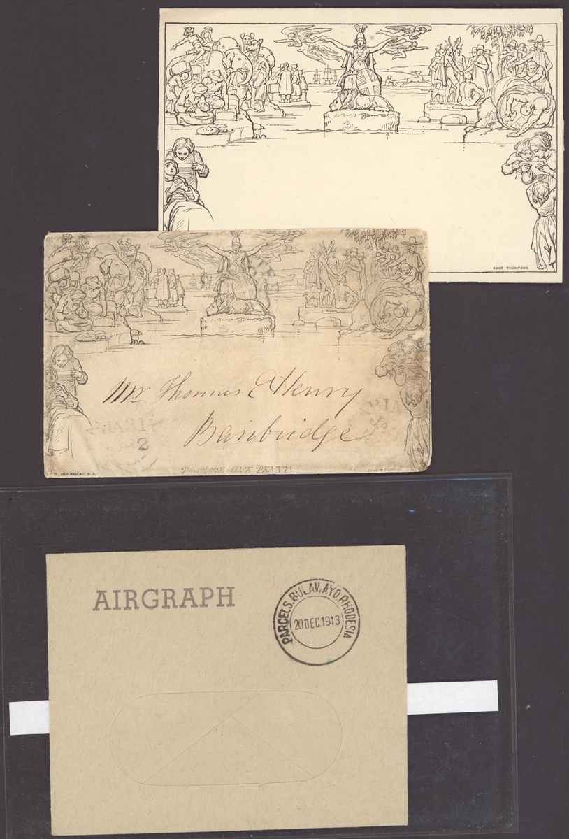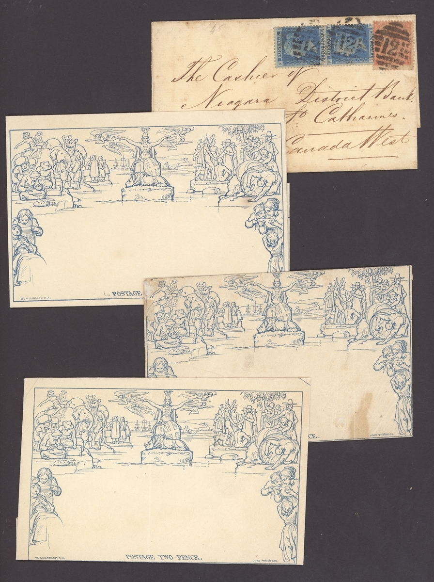 Selection in album and loose, including a range of Free Fronts (30+), 1840 Mulready 1d. envelope used, Letter sheet unused, 2d. envelope (2) and letter sheet unused, 1840 1d. on entire (2), 1861 envelope franked 1d. from George Cruikshank (noted Artist) to Charles Morriss in Pimlico, 1902-10 1d. on first day cover, 1911 ½d. on J.P.S. souvenir first day cover, 1911 ½d. on brown First U.K. Aerial Post card, etc., very mixed condition