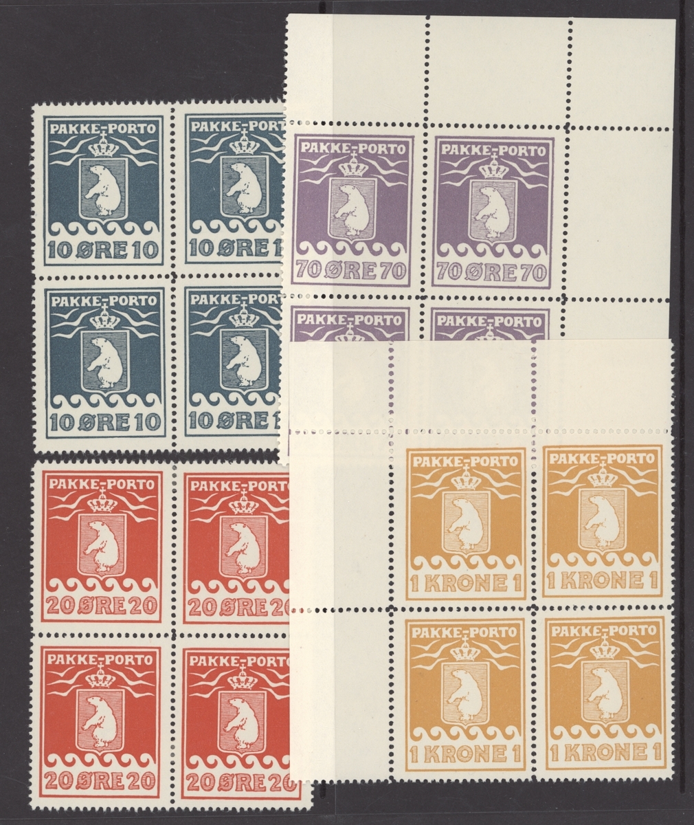 10oe., 20oe., 70oe. and 1k., the set in blocks of four, unmounted mint or original gum; fine. S.G. P7B-11B