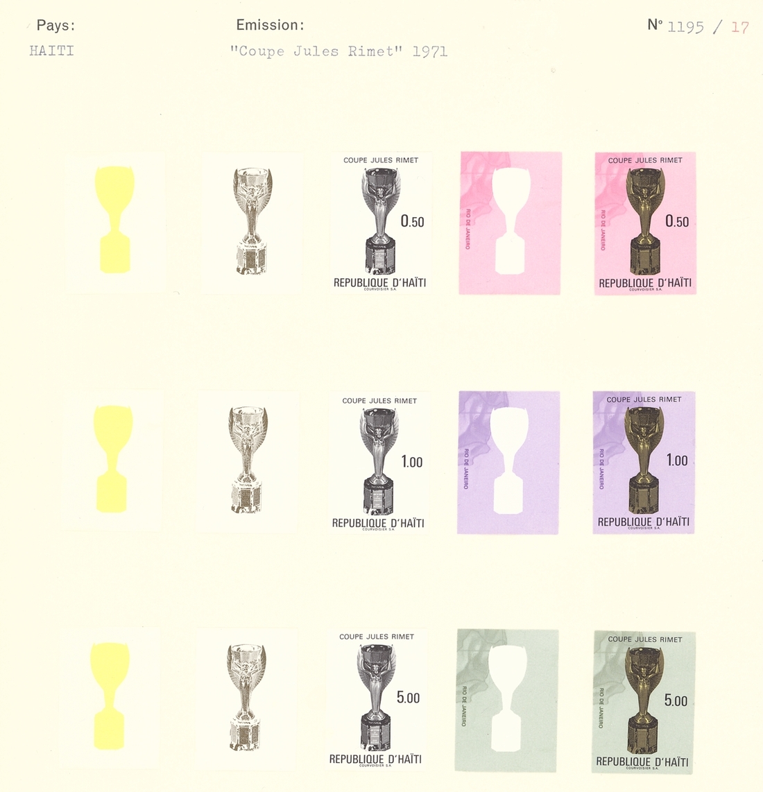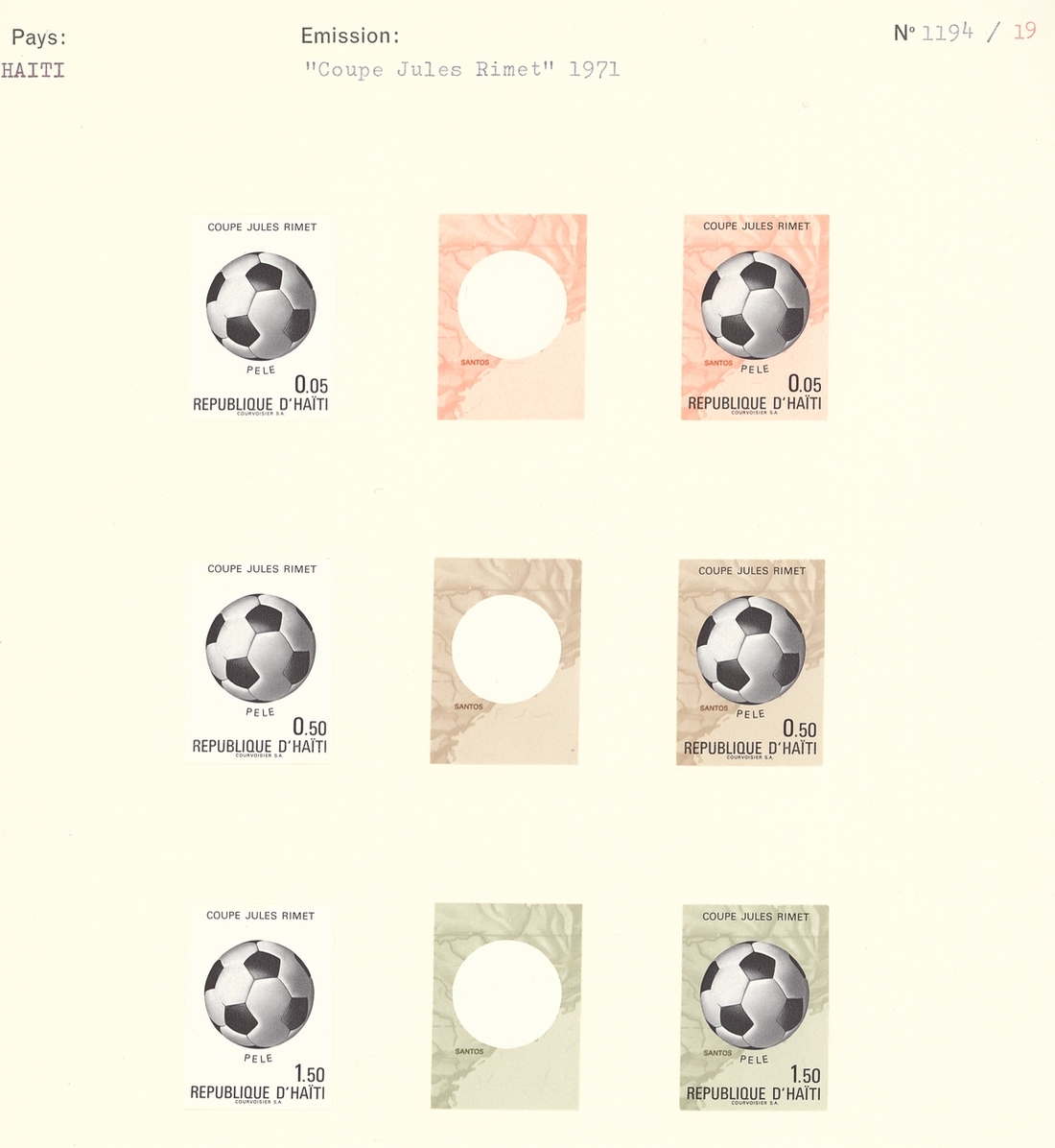 1971 Football, collection of 31 Courvoisier progressive Proof, including the miniature sheet, affixed to three special pages; fine. A unique group. S.G. 1228-MS1234