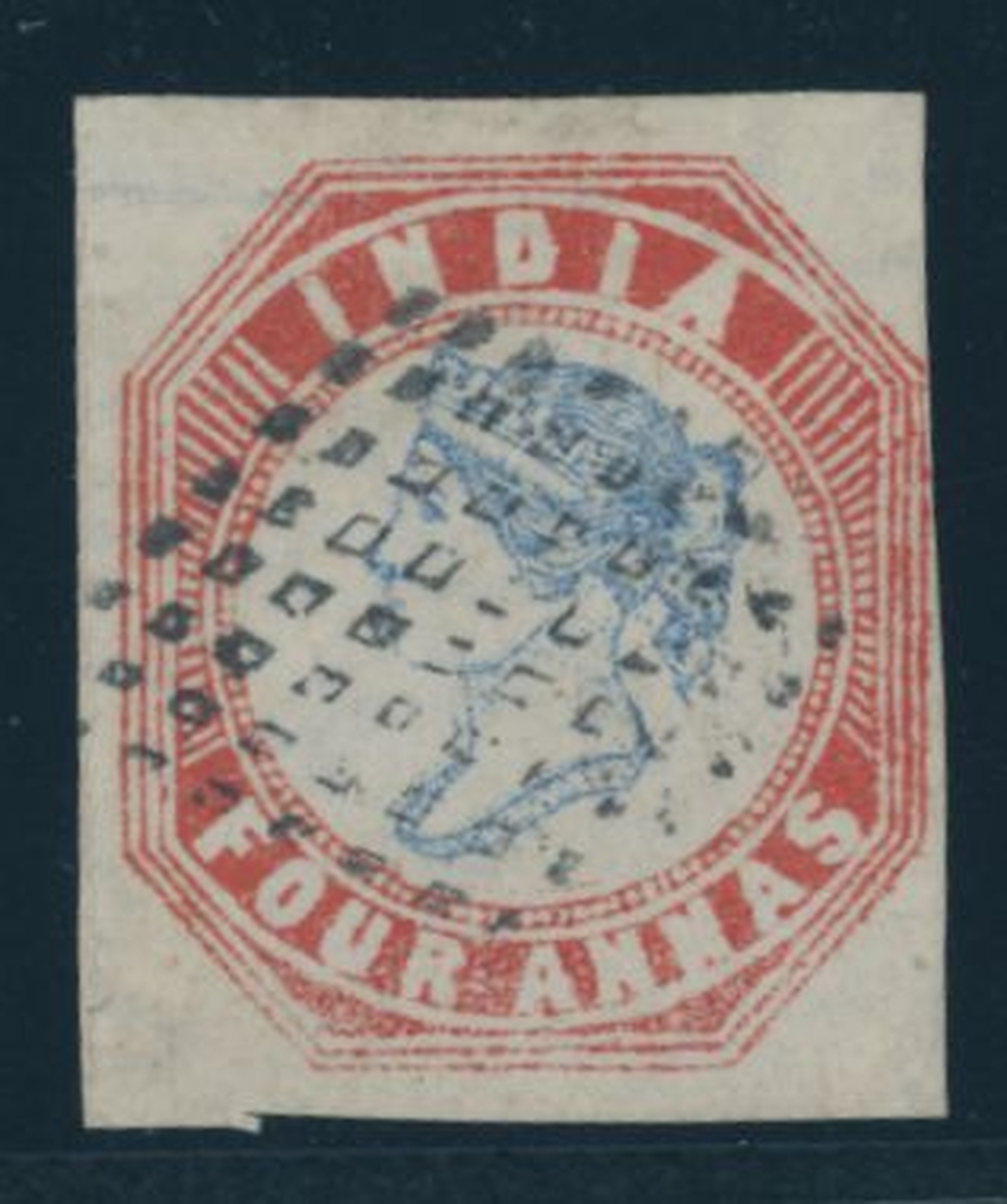 1854 4a. pale blue and pale red, 4th printing, close to large margins, cancelled by diamond of dots obliterator. Fine. A.P.S. Certificate (2024). S.G. 24, £900.