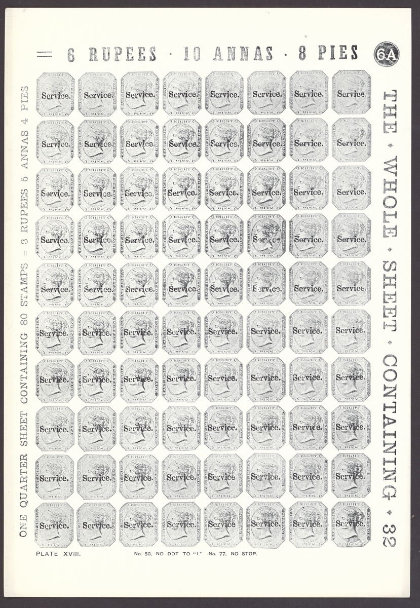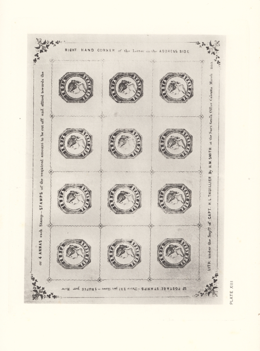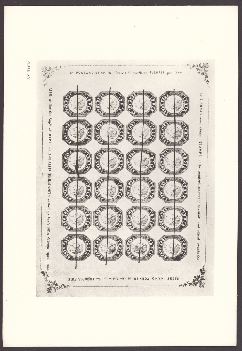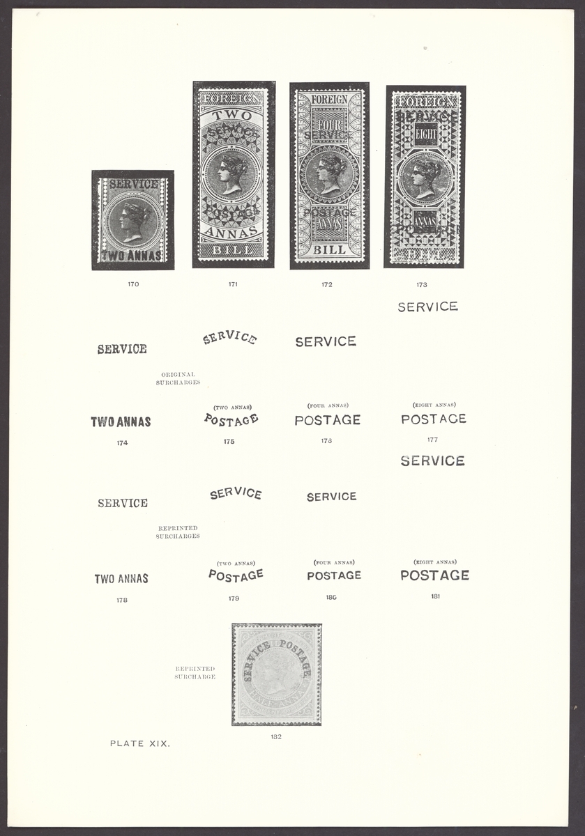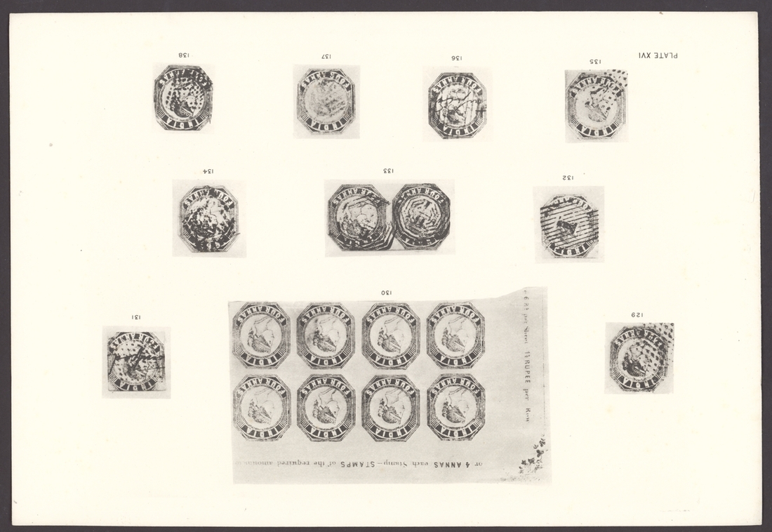 1905 the complete set of twenty three plates from the book "The Postage and Telegraph Stamps of British India" by L.L.R. Hausburg, C. Stewart-Wilson & C.F.S. Crofton, including the famous plates III and IV that were printed directly from the original copper plates; Plate III with ½a. and 1a. printed in black and each in a strip of eight and Plate IV with ½a., 2a. essays (both designs), 4a. and head all printed in black. Minor usual imperfections, a valuable, very difficult set to be found.
