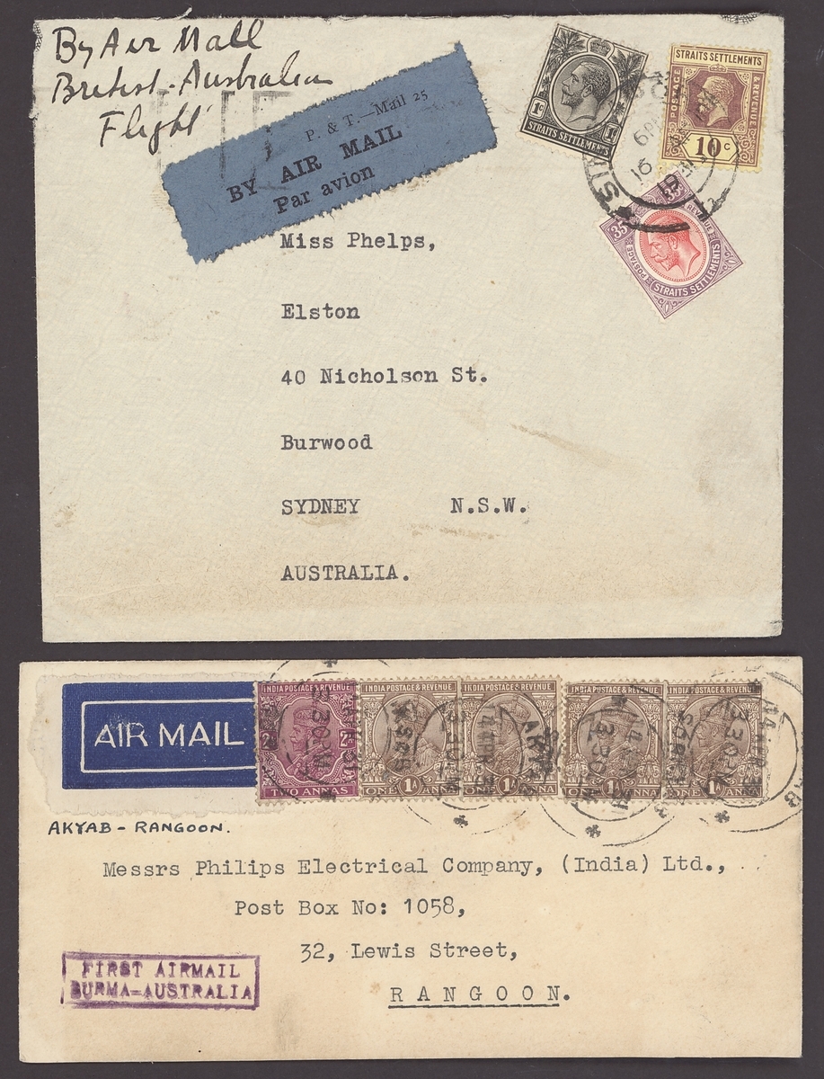1931 (15 April), envelope from Akyab to Rangoon franked 1a. (4), 2a. with boxed violet