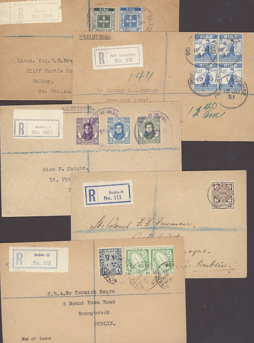 1922-48, selection of twenty-three first day covers, including 1922 (17 Feb.) 2½d., 1922-34 2d., 2½d., 3d., 4d., 1929 Emancipation, 1931 R.D.S. 2d. block of four, 1932 Eucharistic set, 1933 Holy Year, 1934 Hurling, 1937 Constitution, 1938 Temperance, 1939 U.S. Constitution, 1941 Easter Rising, etc., some illustrated, chiefly fine. Also one non FDC.