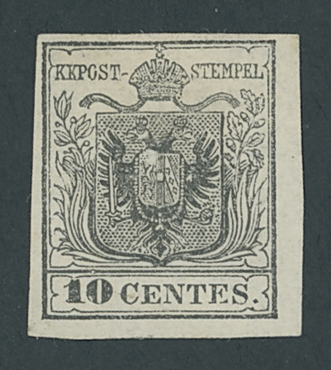 1850 10c. black good to very large margins, unused and regummed, a small repair to the centre, still with fresh colour and an attractive spacefiller. Behr certificate (2016). Sassone 2, €2,750