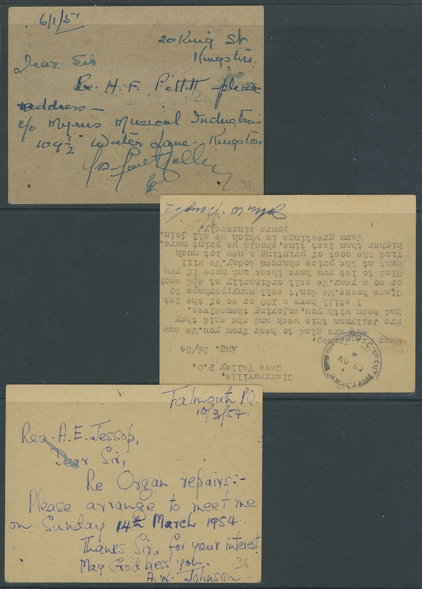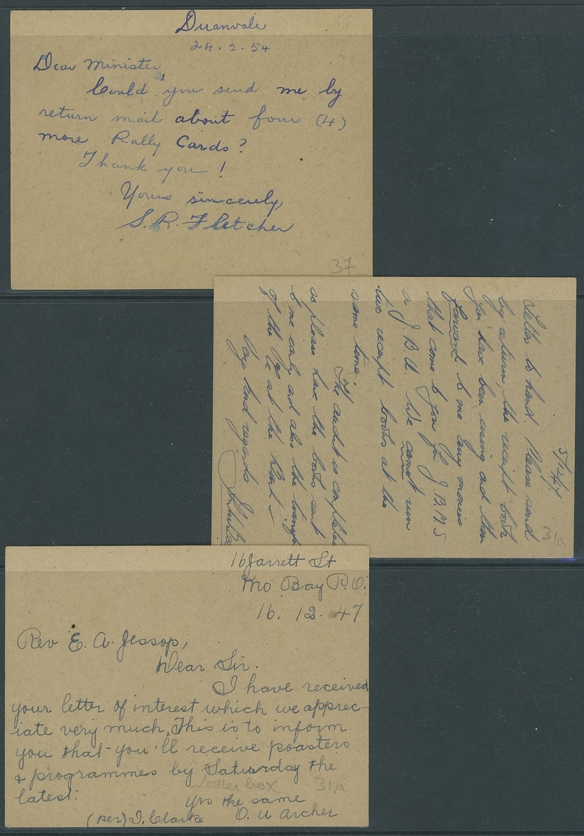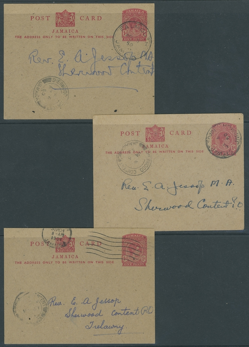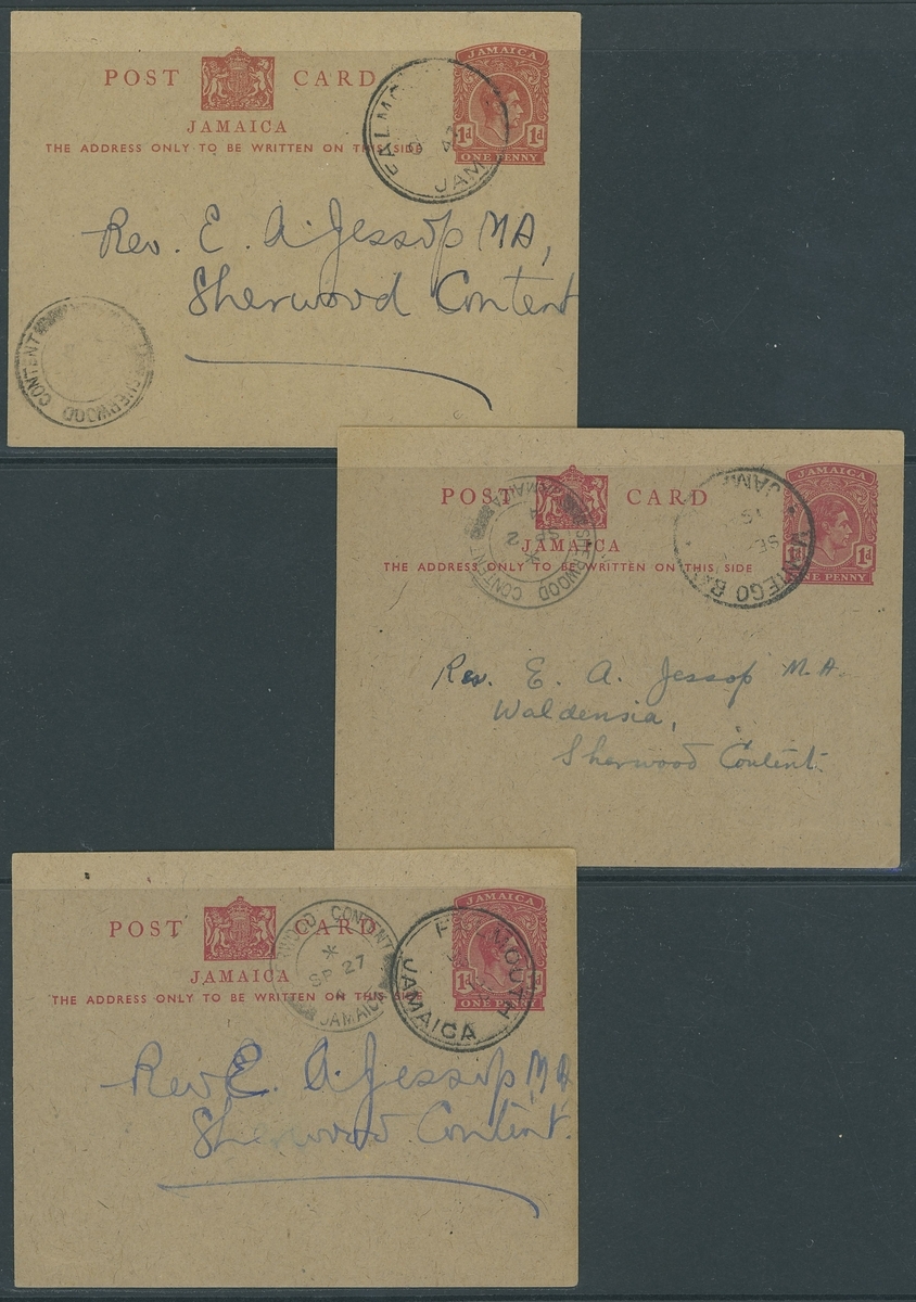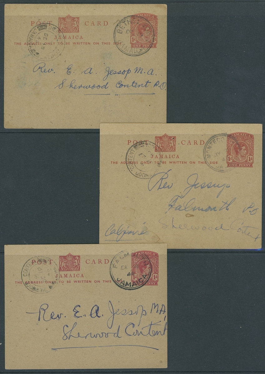 1946-54 a used selection (19) of the 1936 1d. red on buff postal stationery card type, all from the 'Jessop' correspondence showing various shades from different printings and some different postmarks. Mixed condition, direct inspection advised to fully appreciate this seldom offered lot.