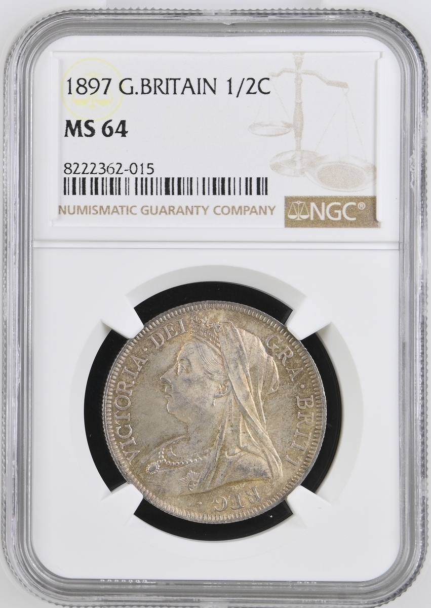 NGC MS64 | Victoria (1837-1901), 'Old Head' Halfcrown, 1897, veiled bust left, rev. crowned shield in Garter, edge milled, 14.13g, 12h (ESC 731; Bull 2783; S.3938), very light surface scuffing, otherwise toned, extremely fine, in NGC holder, graded MS64 (Cert. #8222362-015)