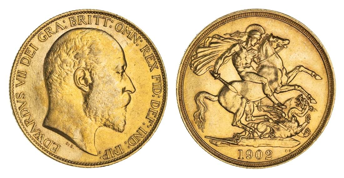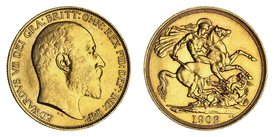 (g) Edward VII (1901-1910), Two-Pounds, 1902 'Low Date', bare head right, rev. St George and Dragon, edge milled, 15.97g, 12h (Hill T40; S.3967), lustrous, near extremely fine