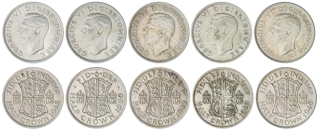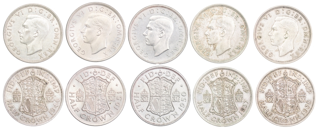 Large Collection of 20th Century Mixed Coinage (103) | including, Edward VII (1901-1910), 1902 Crown (S.3978); Halfcrowns (8) (S.3980); Shilling (S.3982); Sixpence (S.3983); Fourpence (S.3986); Threepence (S.3987); also George V (1910-1936), 1935 Crown (S.4048); Halfcrowns (25) including NGC MS64, 1915 Halfcrown, (S.4011, 4037); Shilling (S.4039); Sixpences (2) (S.4014); also George VI (1936-1952), 1937 Crown (S.4078); 1951 Crown (S.4111); Halfcrowns (16) (S.4080, 4101, 4106); Shillings (2) (S.4082, 4083); Sixpences (2) (S.4084, 4110); also Elizabeth II (1952-2022), Crowns (12); Halfcrowns (16); Shilling; 5 Pence, 1969; Sixpences (2); also Mixed Copper (2); and Nickel Brass Threepences (5), varying conditions, some uncirculated, some much more worn, fine to extremely fine (103)