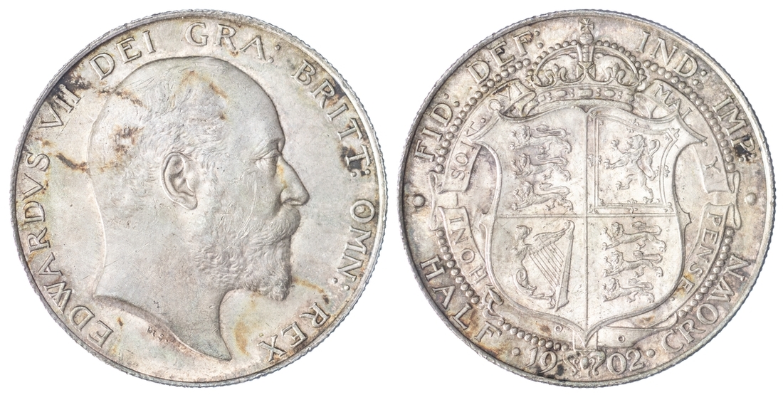 Edward VII (1901-1910), Halfcrown, 1902, bare head right, rev. crowned shield in Garter, edge milled, 14.12g, 12h (Bull 3567; ESC 746; S.3980), light scattering of contact marks and areas of irregular toning, yet with a pleasing lustre, extremely fine