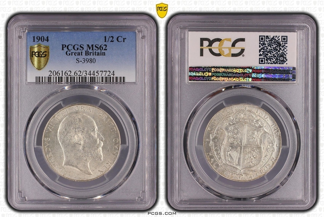 PCGS MS62 | Edward VII (1901-1910), Halfcrown, 1904, bare head right, rev. crowned shield in Garter, edge milled, 12h (ESC 749; Bull 3570; S.3980), a few light contact marks but otherwise residually lustrous, extremely fine, in PCGS holder, graded MS62 (Cert. #34457724)