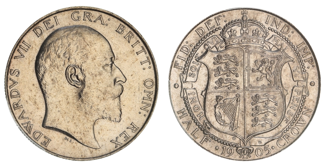 PCGS MS62 | Edward VII (1901-1910), Halfcrown, 1905, bare head right, rev. crowned shield in Garter, edge milled, 12h (ESC 750 [R2]; Bull 3571; S.3980), some light contact marks, otherwise lustrous, the famous key date in the series, extremely fine, in PCGS holder, graded MS62 (Cert. #34131806)