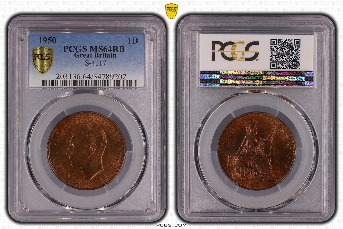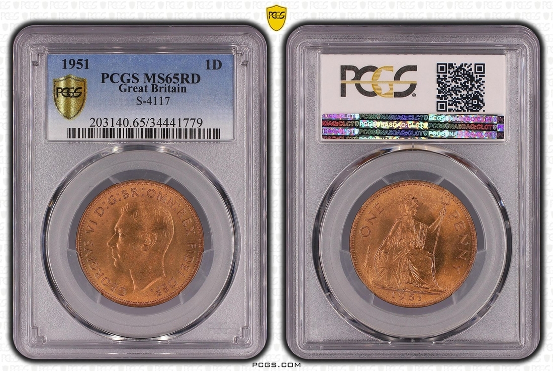 PCGS MS64-MS65 | George VI (1936-1952), Pennies (4), 1950, 1951 (3), Second Issue, 12h (S.4117), lustrous, toned with red-brown hues, all extremely fine, all in PCGS holders, graded MS64-MS65 (Cert. #34789202, 34789205, 34789203, 34441779) (4)