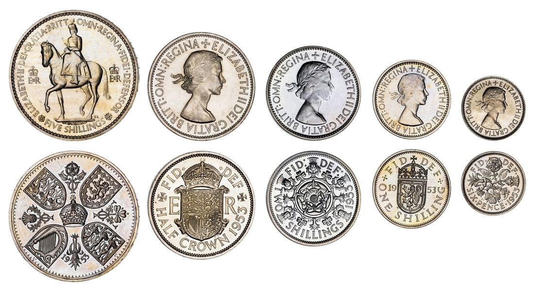 Elizabeth II (1952-2022), Coronation Proof Set, 1953, Crown to Sixpence (5), (cf.PS19), evidence of previous handling and light contact marking in parts, nonetheless with a pleasing brilliance to fields, extremely fine, in original case issued by Bank of London & South America Limited (5)