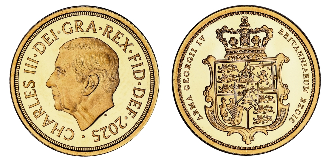 (g) Charles III (2022-Present), Commemorative Proof Half-Sovereign, 2025, "200th Anniversary of Merlen's Shield", by Martin Jennings and Jean-Baptiste Merlen, CHARLES · III · DEI · GRA · REX · FID · DEF · 2025, first bare head left, rev. ARMA GEORGII IV - BRITANNIARUM REGIS, crowned shield in mantle, edge milled, 3.98g*, 12h , light handling marks, otherwise brilliant uncirculated, only 3,035 minted, (with Royal Mint Certificate of Authenticity #0849)