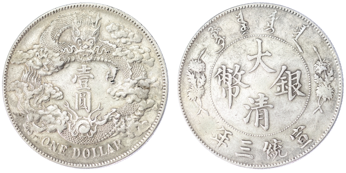 (x) China, Dollar, Year 3 (1911), variety without dot after DOLLAR and with extra flame, 26.67g (L&M-37; K-227; KM-Y-31; WS-0046B), some wear and tooling to the surface, fine to fair, unencapsulated but designated Altered Surfaces by NGC (Cert. #8222352-001)