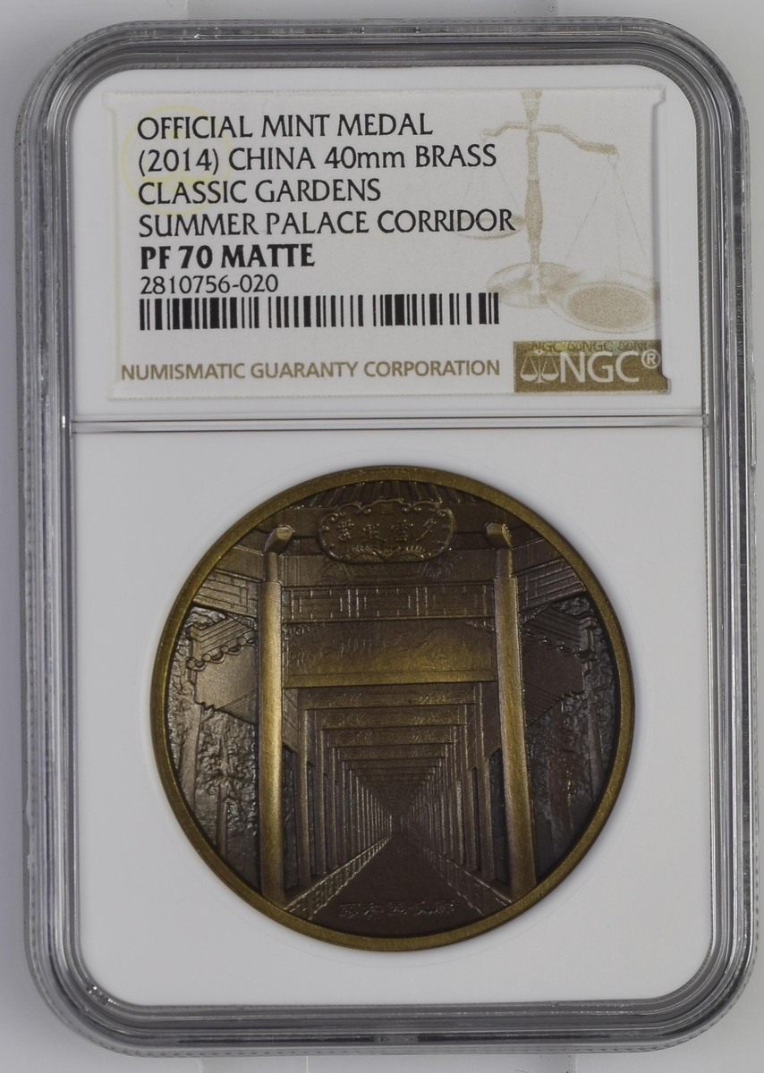 NGC PF70 MATTE | *Top Pop* | China, Republic, Official Brass Medal, 'Classic Gardens Summer Palace Corridor', 2014, 12h, as struck, in NGC holder, graded PF70 MATTE (Cert. #2810756-020) [*Joint Finest Certified*]