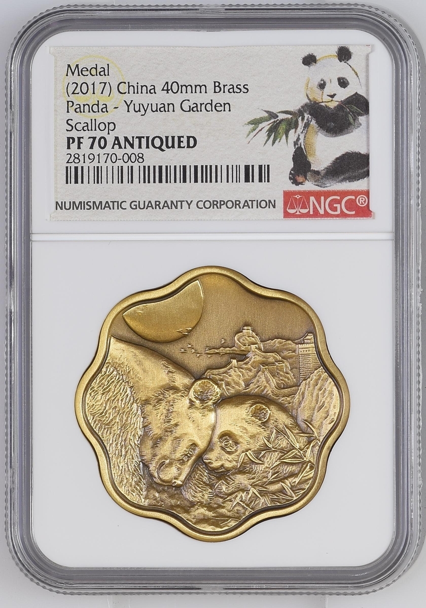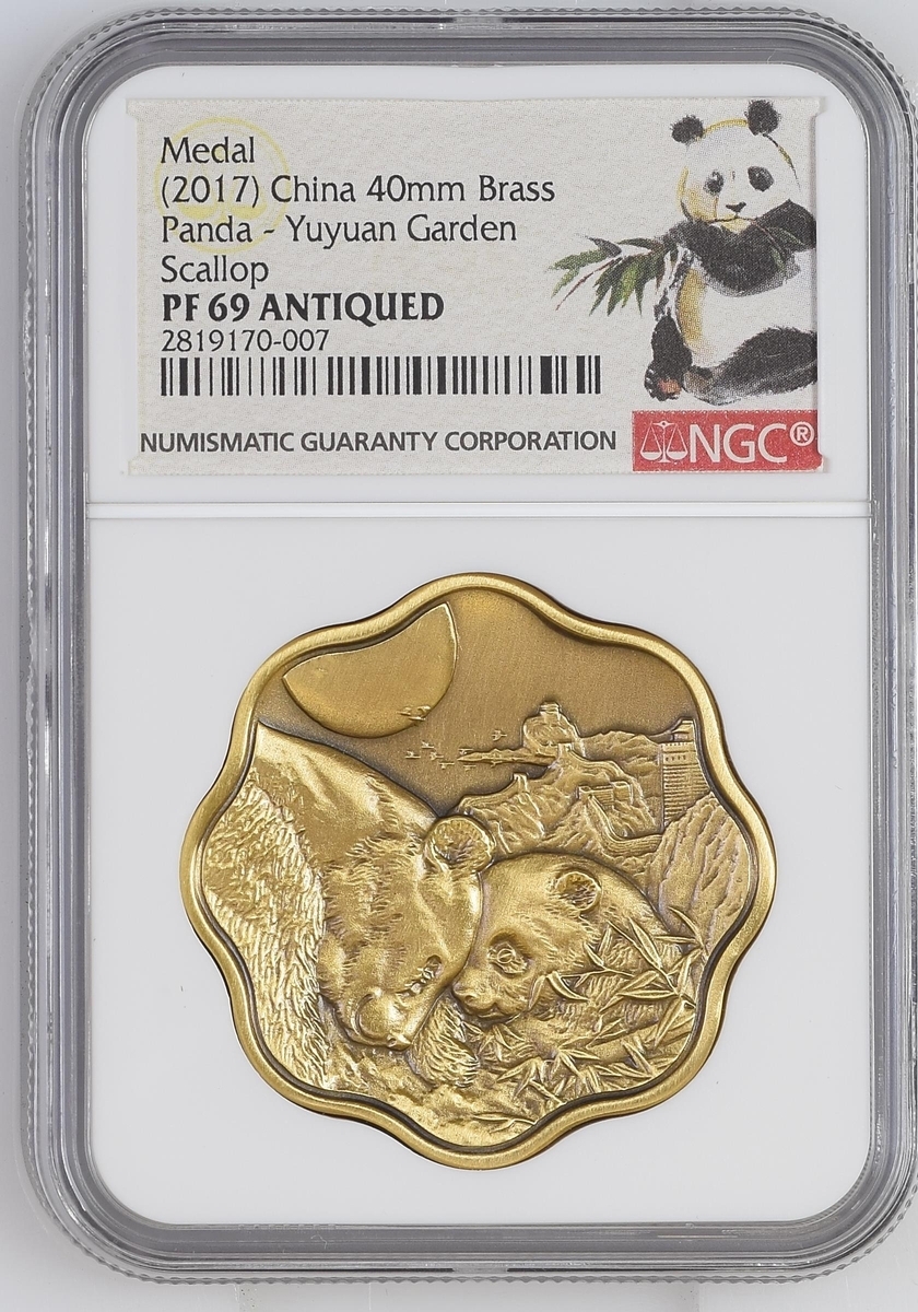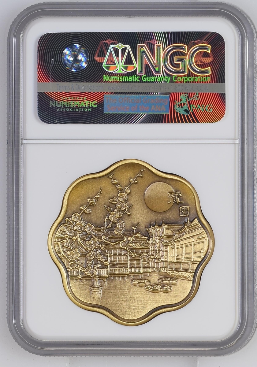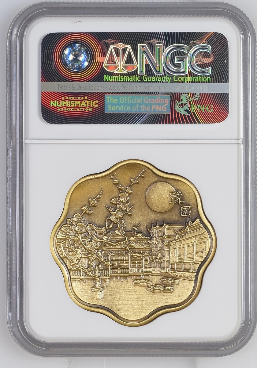 NGC PF70 ANTIQUED | *Top Pop* | China, Republic, Official Proof Brass 'Scallop' Medal, 'Yuyuan Garden', 12h as struck, in NGC holder, graded PF70 ANTIQUED [*Joint Finest Certified*] (Cert. #2819170-008); another, NGC PF69 ANTIQUED | China, Republic, Official Proof Brass 'Scallop' Medal, 'Yuyuan Garden', 12h as struck, in NGC holder, graded PF69 ANTIQUED (Cert. #2819170-007); another, NGC PF68 ANTIQUED | China, Republic, Official Proof Brass 'Scallop' Medal, 'Yuyuan Garden', 12h as struck, in NGC holder, graded PF68 ANTIQUED (Cert. #2816195-012) (3)