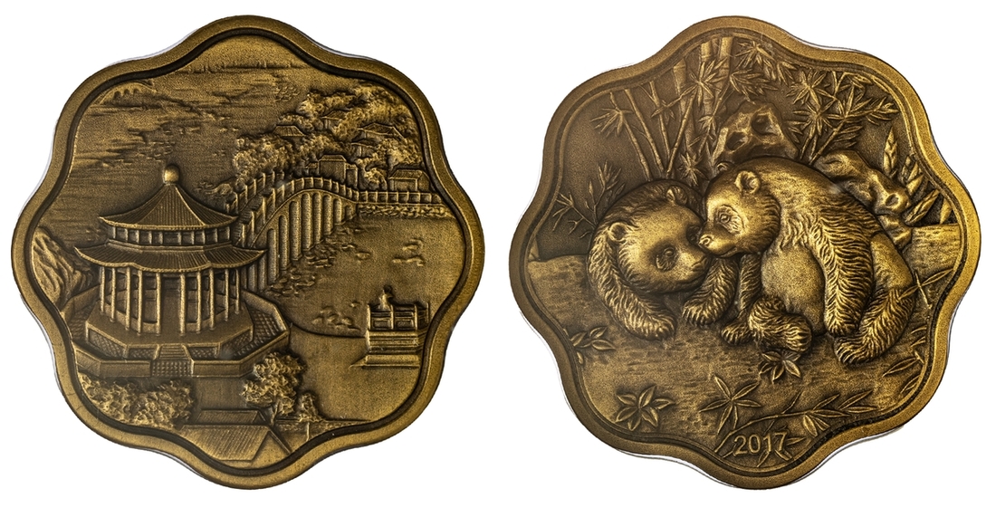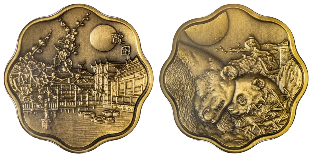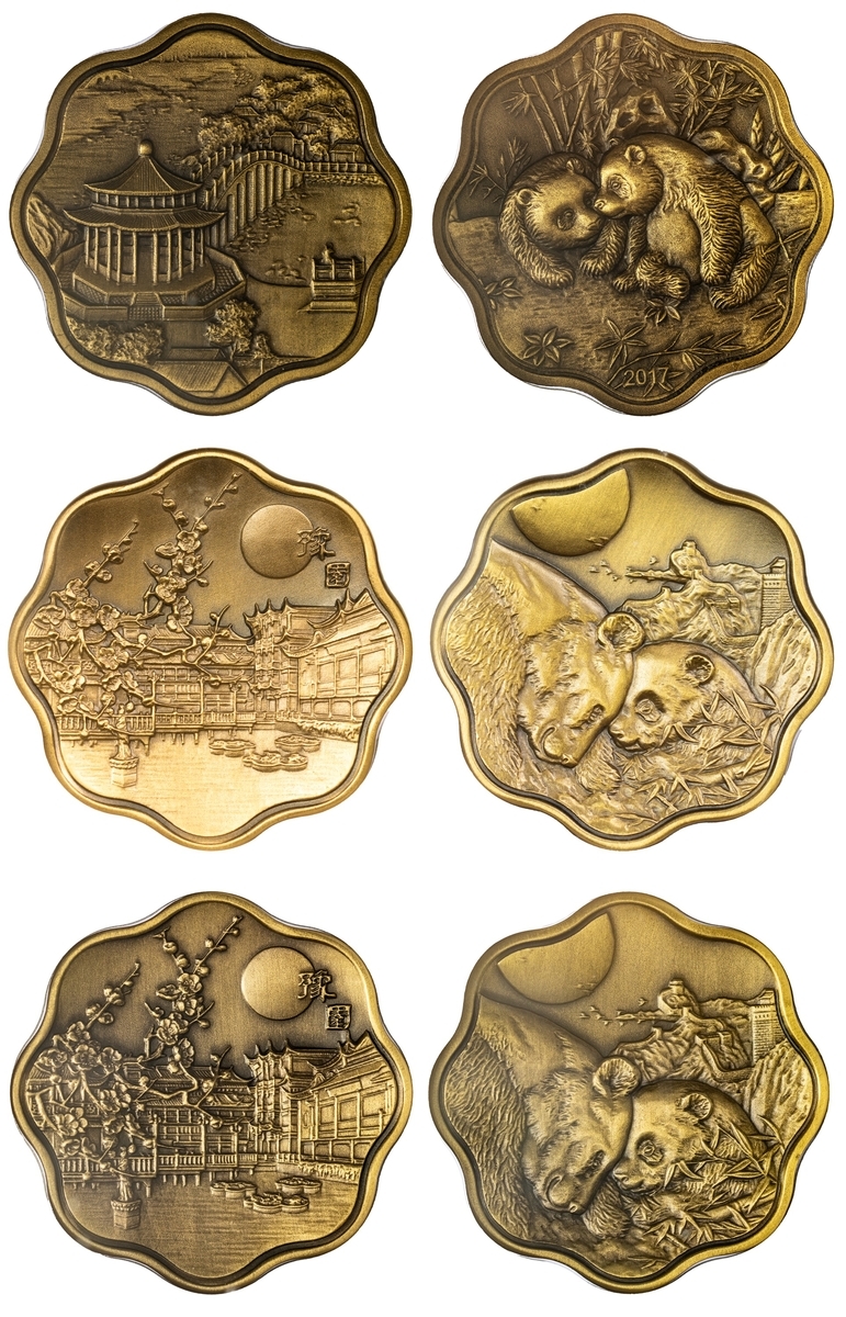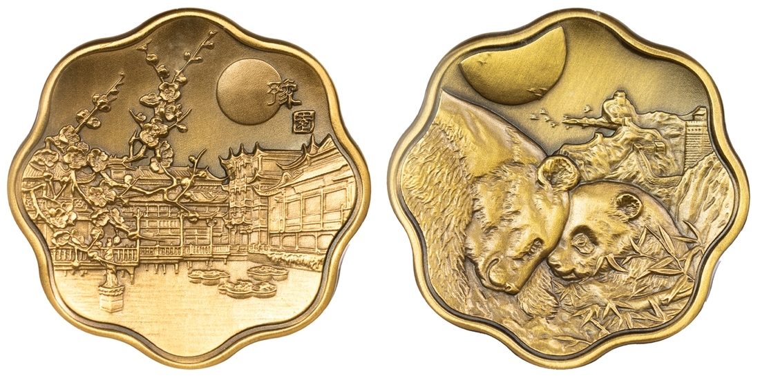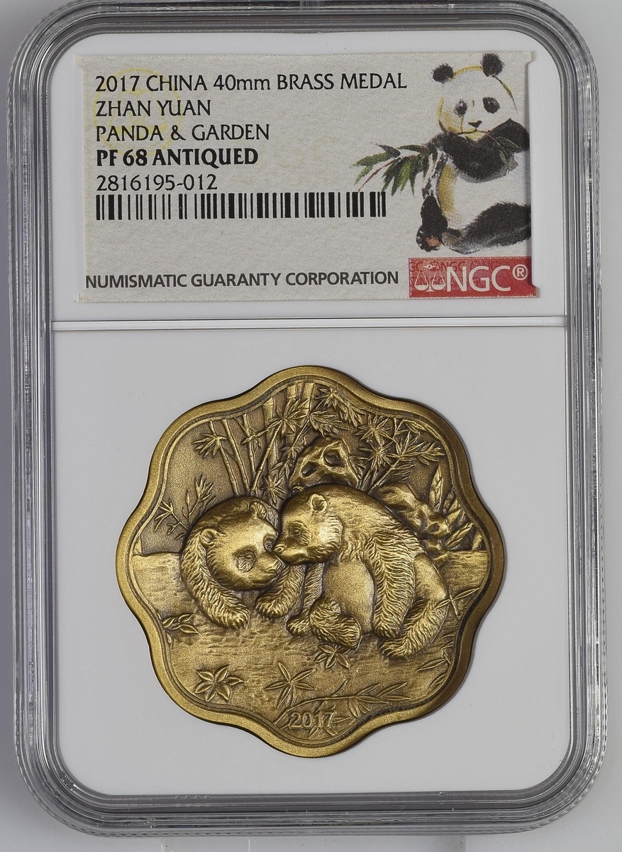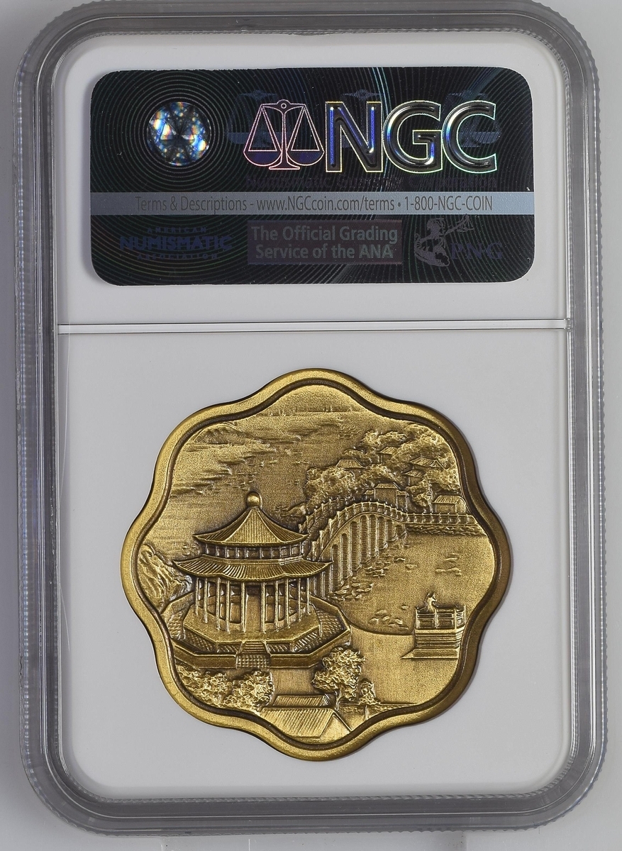 NGC PF70 ANTIQUED | *Top Pop* | China, Republic, Official Proof Brass 'Scallop' Medal, 'Yuyuan Garden', 12h as struck, in NGC holder, graded PF70 ANTIQUED [*Joint Finest Certified*] (Cert. #2819170-008); another, NGC PF69 ANTIQUED | China, Republic, Official Proof Brass 'Scallop' Medal, 'Yuyuan Garden', 12h as struck, in NGC holder, graded PF69 ANTIQUED (Cert. #2819170-007); another, NGC PF68 ANTIQUED | China, Republic, Official Proof Brass 'Scallop' Medal, 'Yuyuan Garden', 12h as struck, in NGC holder, graded PF68 ANTIQUED (Cert. #2816195-012) (3)