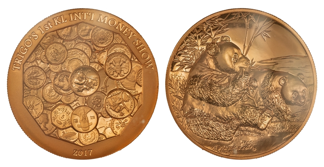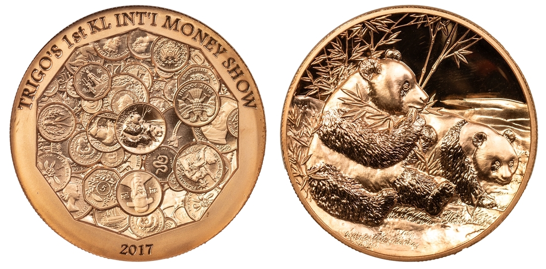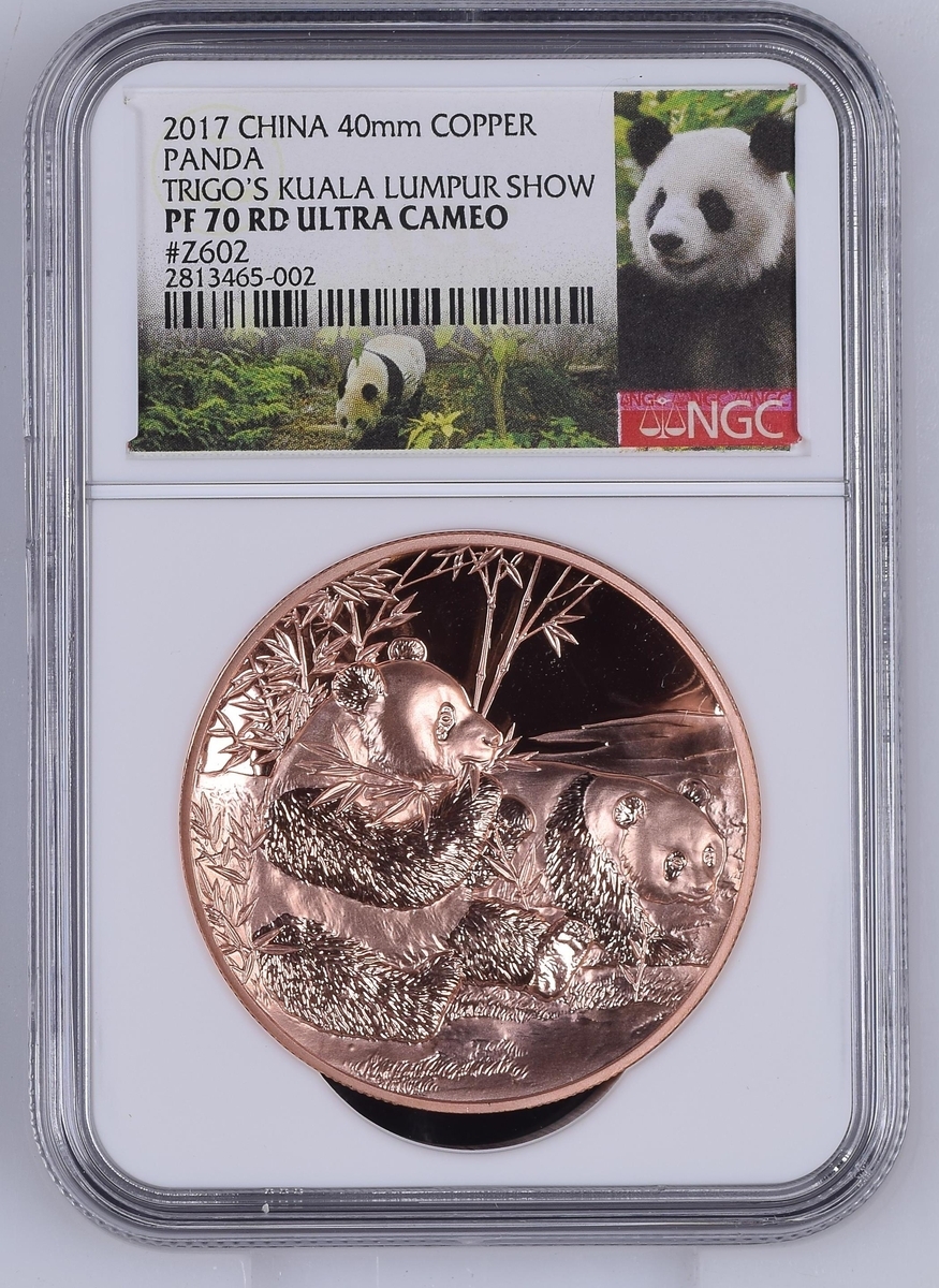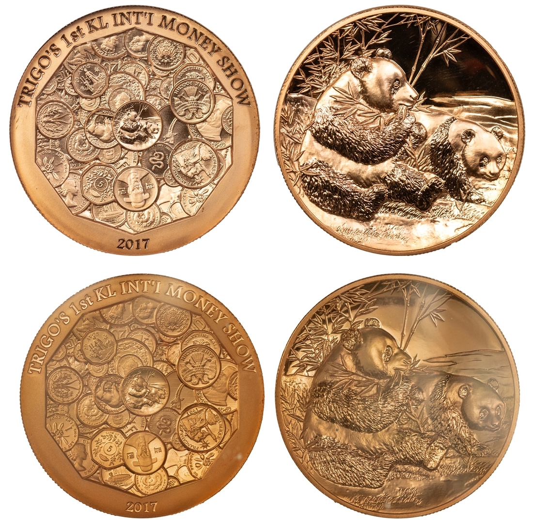 NGC PF69 RD ULTRA CAMEO | China, Republic, Proof Copper Medal, 'Trigo's Kuala Lumpur Show', 2017, 12h (#Z603) as struck, in NGC holder, graded PF69 RD ULTRA CAMEO (Cert. #2813465-001); another, NGC PF70 RD ULTRA CAMEO | China, Republic, Proof Copper Medal, 'Trigo's Kuala Lumpur Show', 2017, 12h (#Z602) as struck, in NGC holder, graded PF70 RD ULTRA CAMEO (Cert. #2813465-002) (2)