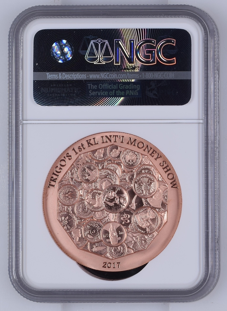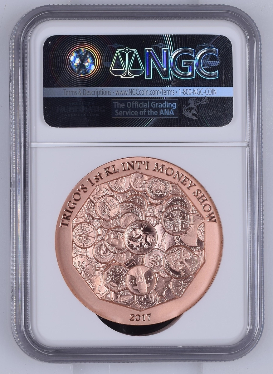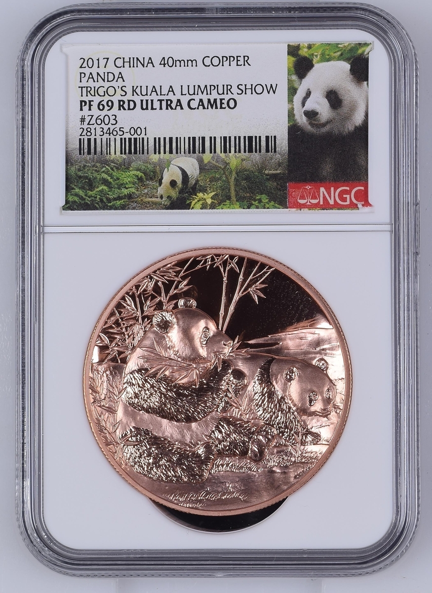 NGC PF69 RD ULTRA CAMEO | China, Republic, Proof Copper Medal, 'Trigo's Kuala Lumpur Show', 2017, 12h (#Z603) as struck, in NGC holder, graded PF69 RD ULTRA CAMEO (Cert. #2813465-001); another, NGC PF70 RD ULTRA CAMEO | China, Republic, Proof Copper Medal, 'Trigo's Kuala Lumpur Show', 2017, 12h (#Z602) as struck, in NGC holder, graded PF70 RD ULTRA CAMEO (Cert. #2813465-002) (2)