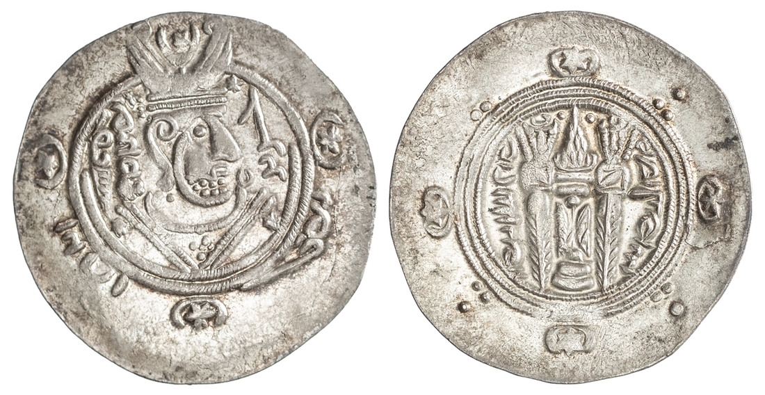 Arab-Sasanian, Anonymous, Drachm, [AH33?], 4.04g, pleasing strike and toned to the peripheries, extremely fine; Arab-Sasanian, Governors of Tabaristan, Jarir (786-788), Hemidrachm, PYE 135, Tabaristan, 2.02g (Album 63; Malek 94), lustrous and toned, extremely fine (2)