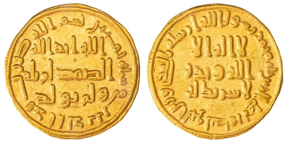Umayyad, temp. 'Abd al-Malik (685-705), gold Dinar, AH80, mintless type (Damascus), 4.22g (Album 125; Wilkes 158), couple of small scratches, slightly soft of strike, yet lustrous, good very fine