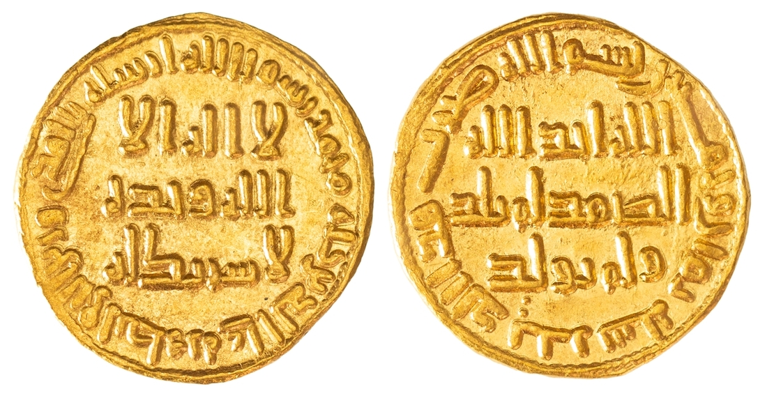 Umayyad, temp. al-Walid I (705-715), gold Dinar, AH88, mintless type (Damascus), 4.29g (Album 127; Wilkes 166), lustrous and a pleasing strike, about uncirculated