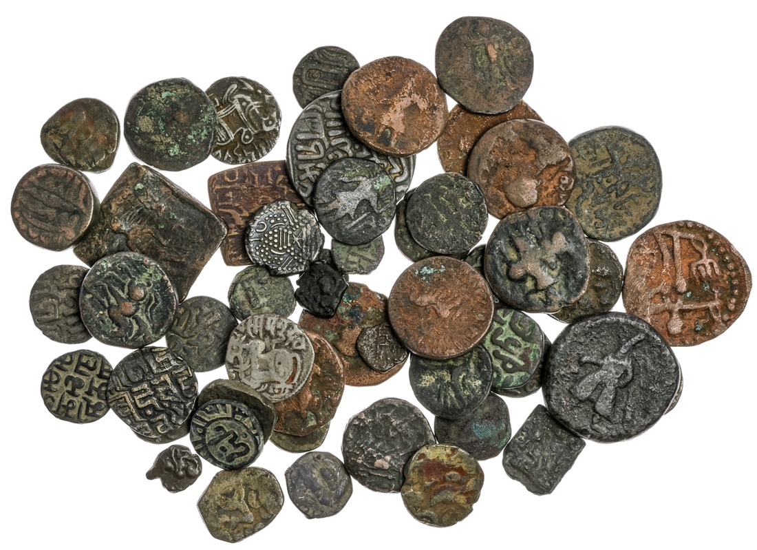India, Ancient & Medieval, Miscellaneous Silver Coins (6) AE or Billon (47), including coins of the Indo-Greeks, Kushans, Satraps, Kalachuris, Indo-Sasanians, Gujara Pratiharas, Kashmir Rajas, Shahi Dynasty and the early Sultans of Delhi, an interesting lot, generally fair to good fine (57)