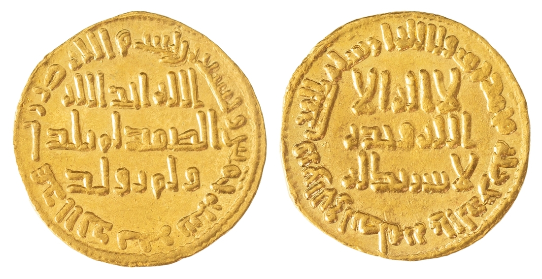 Umayyad Dynasty, temp. al-Walid I (705-715), gold Dinar, AH95, mintless type (Damascus), 4.25g (Album 127; Wilkes 179), with a handsome flashy lustre, extremely fine