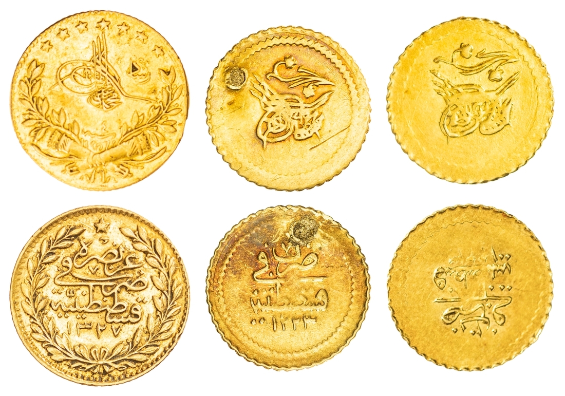 (x) Ottoman Empire, Mahmud II (1808-1839), Quarter Zeri Mahbub, AH 1223 / 7; AH 1223 / 10, Qustantiniyah, 0.76g; 0.79g (KM 608), the first pierced, both fine; Mehmed V (1909-1918), 25 Kurus, AH 1327 / 4, Constantinople, edge milled, 1.78g (KM 752), bruise to edge, about very fine (3)