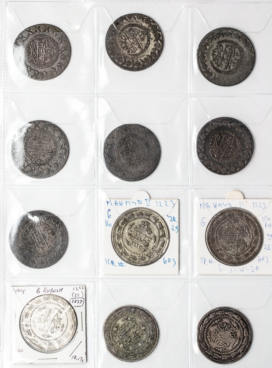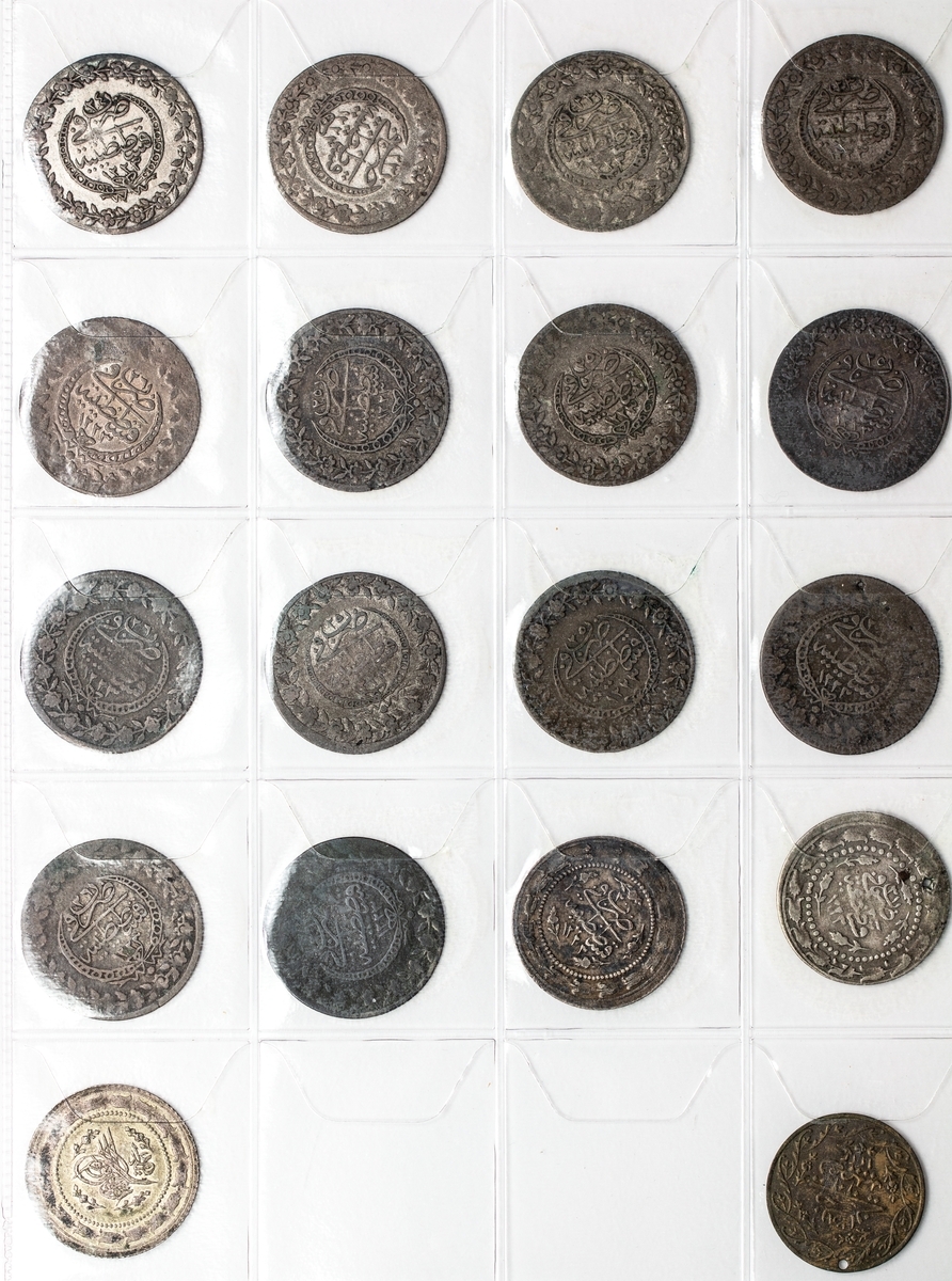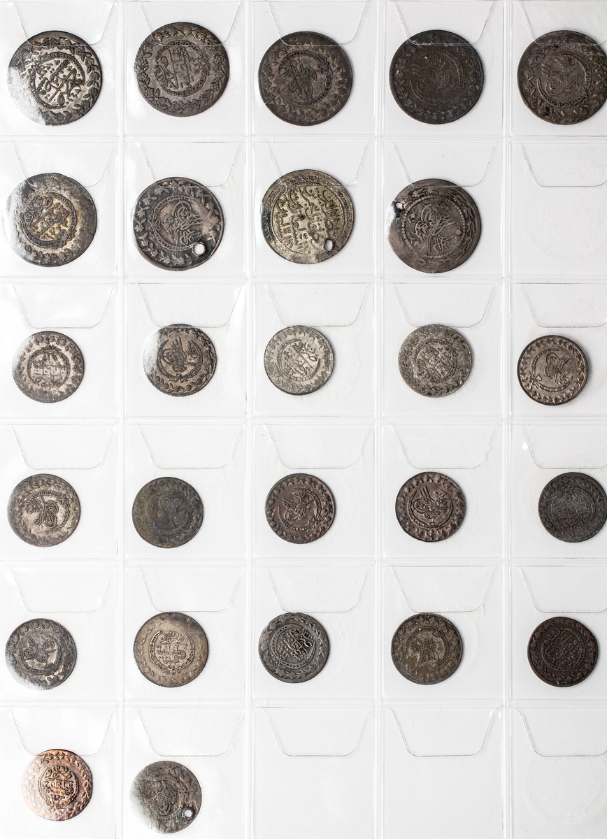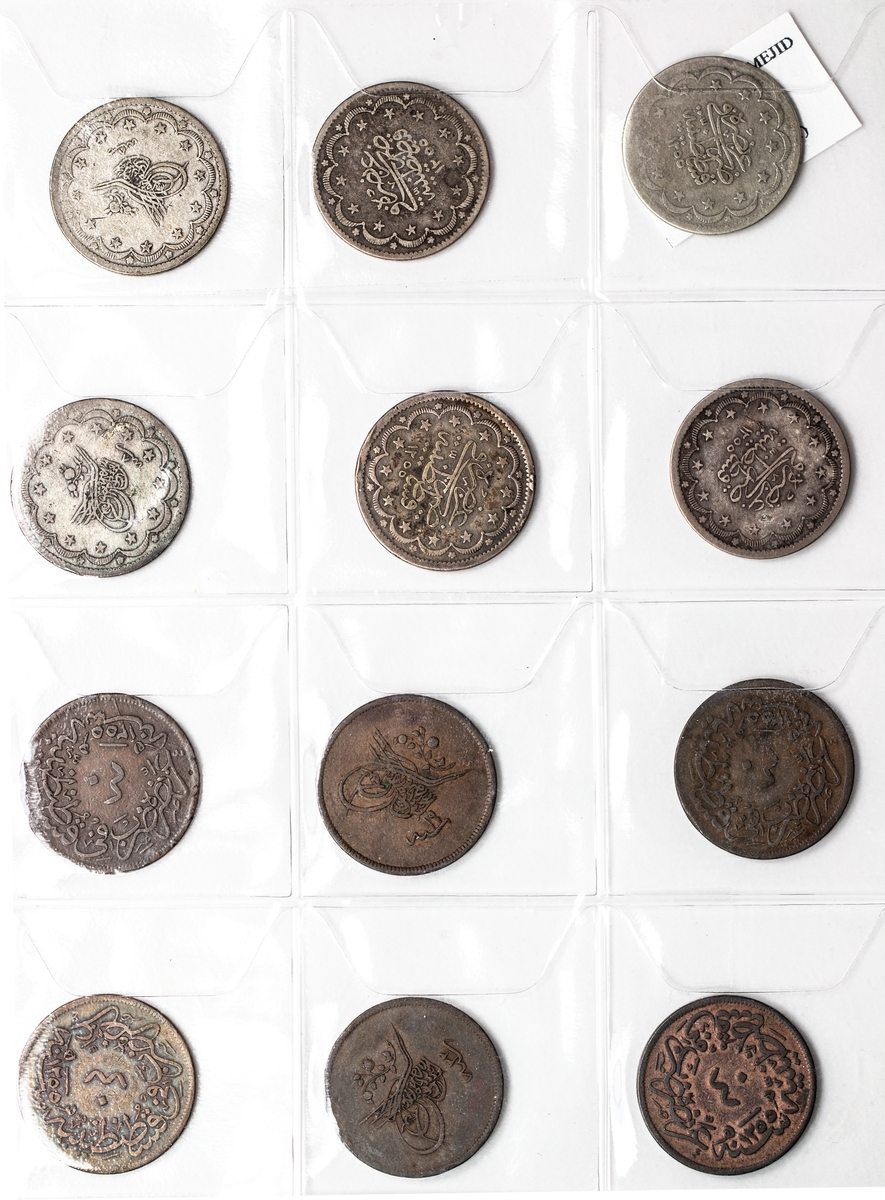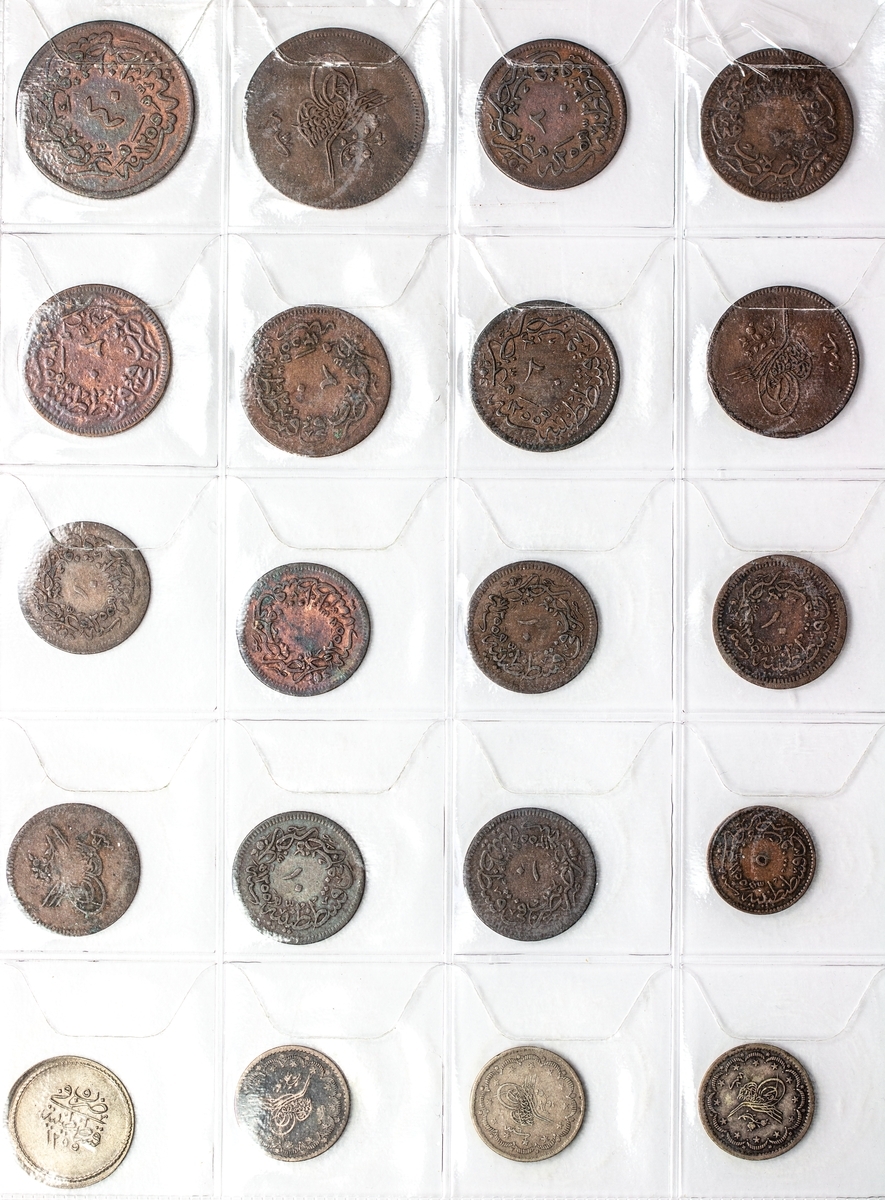 Turkey, Ottoman Empire, a collection of coins from the 19th century in silver, billon and copper, including issues of Selim III (2), Mahmud II (75), Abdul Mejid (53), Abdul Aziz (19), Abdul Hamid II (2), together with later coins (3), 19th and 20th century coins of Egypt (16), Sudan, billon 20-Piastres (3), Tunisia (1), contained in an album, in above average condition, including some scarce dates, generally fine to extremely fine (174)