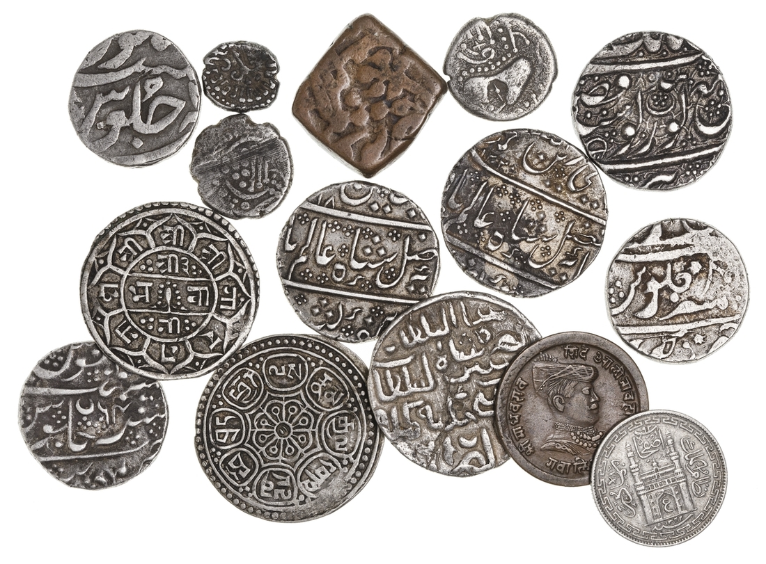 Collection of Indian Sultanate, Princely States and others (15), an eclectic mix of denominations, largely Rupees, generally very fine (15)