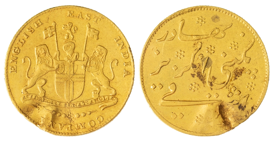 (g) India, East India Company, Madras Presidency, Mohur or Ashrafi, (1819), arms of East India Company, rev. legend, edge milled, 11.66g, 12h (Stevens 4.4 Prid. 241; KM 421.1), with a lightly water worn appearance and with a large tooling mark at 6 o'clock, very fine