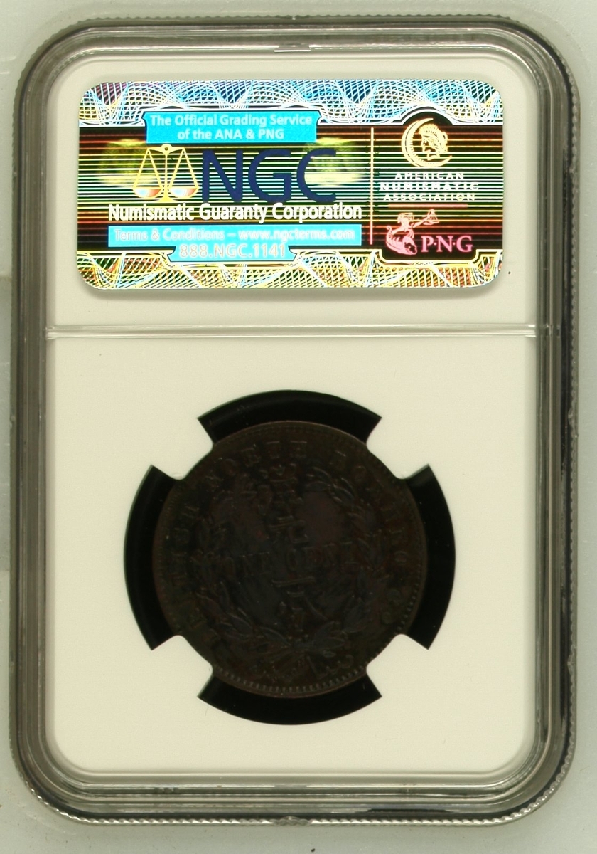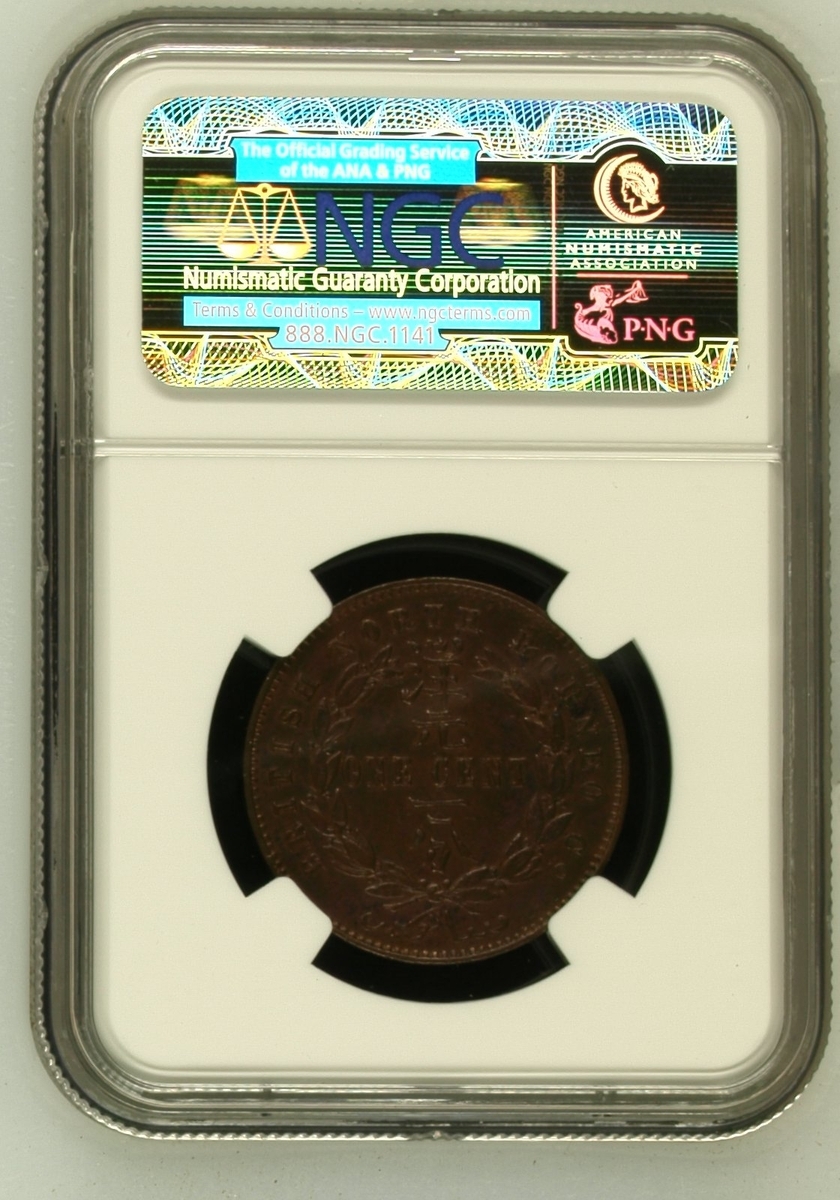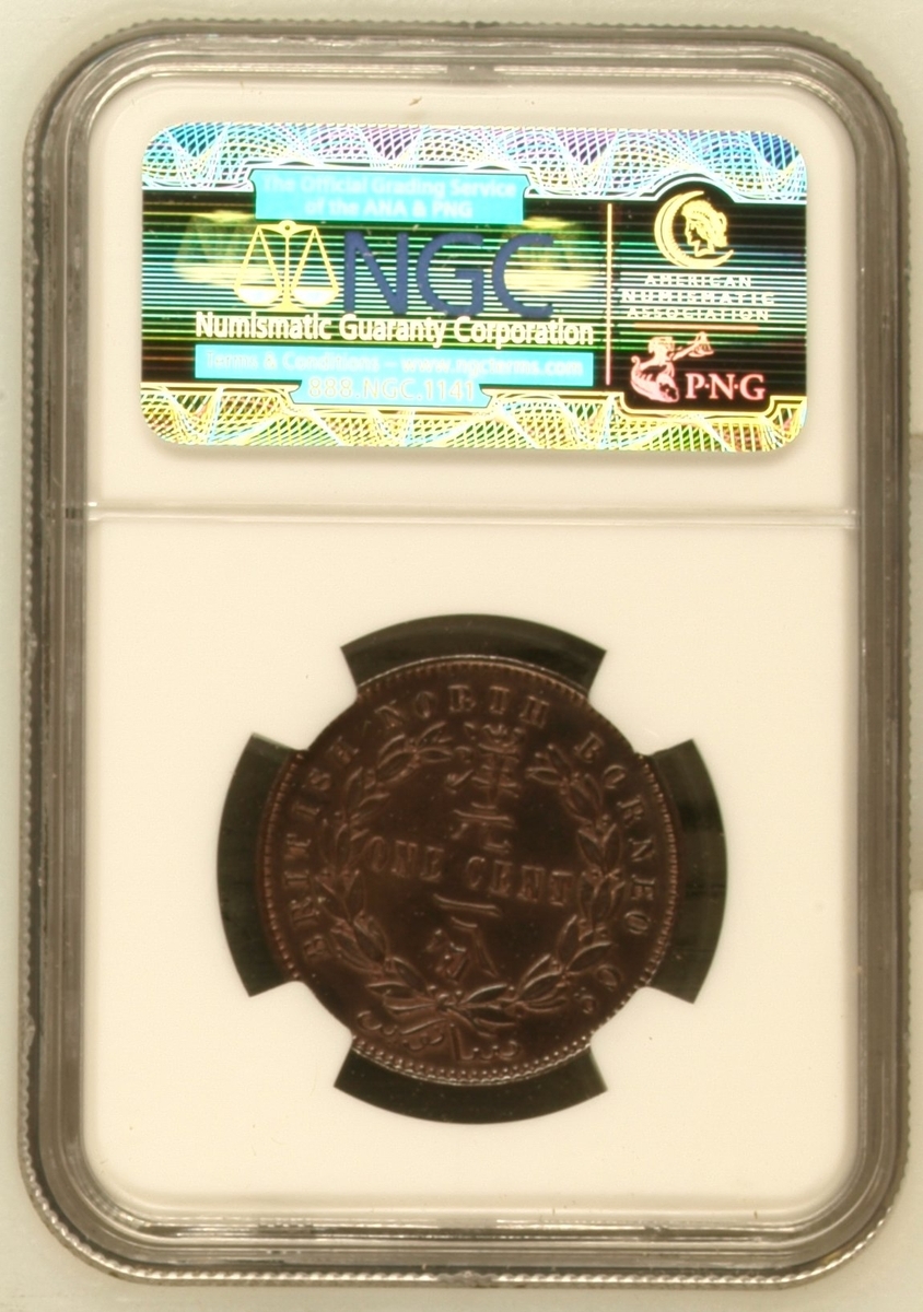 NGC XF | British North Borneo, Cent, 1889 H, arms, rev. value in wreath, edge plain, 12h (KM 2), slight pitting in areas of reverse, with dark brown surfaces, very fine, in NGC holder, graded XF DETAILS ~ Environmental Damage (Cert. #3351855-009); NGC AU | Cent, 1890 H, arms, rev. value in wreath, edge plain, 12h (KM 2), contact marked and with areas of pitting, very fine, in NGC holder, graded AU DETAILS ~ Environmental Damage (Cert. #3351855-011); NGC UNC | Cent, 1891 H, arms, rev. value in wreath, edge plain, 12h (KM 2), wiped and with hairlines, hints of red to edges of devices, very fine, in NGC holder, graded UNC DETAILS ~ Surface Hairlines (Cert. #3476769-015) (3)