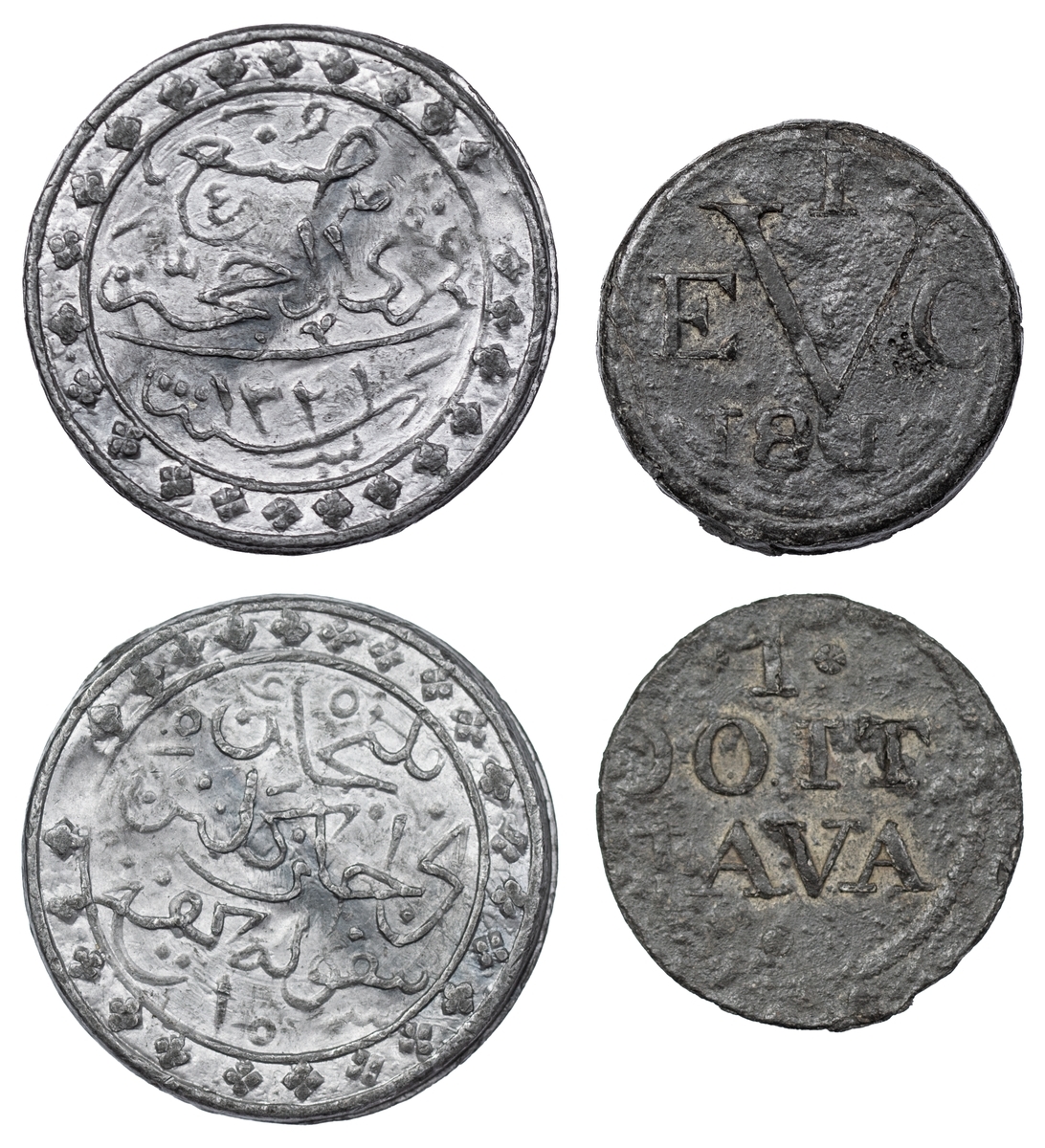 Java, British Administration, Tin Doit, 1813, Batavia, 5.93g, 12h (Prid. 25; Scholten 613), with some corrosion and struck off-centre to obverse, otherwise devices legible, near very fine and scarce; and Malay Peninsula, Kelantan, Muhammad IV, Tin 10-Keping, AH1321 (1903), 15.26g (Prid. 135; KM 20), with much original colour, about extremely fine (2)