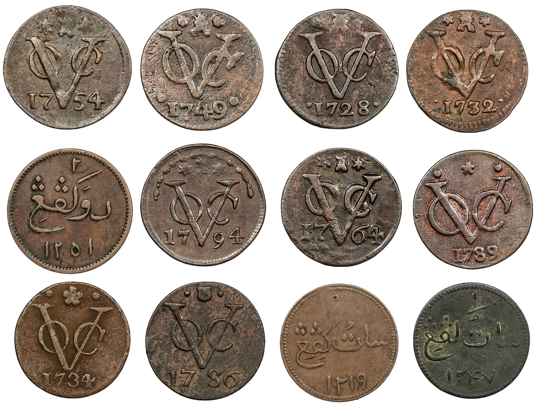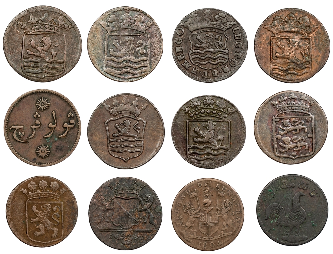 Dutch East Indies, Holland, Duit, 1734; 1789 (KM 70); Utrecht, 1786 (KM 111.1); Zeeland, Duit, 1728 (KM 150); 1732; 1749; 1754; 1764 (KM 152); West Friesland, Duit, 1794 (KM 131), fine to very fine; and Sumatra, Dutch East Indies and Singapore, AE denominations (17); silver denomination (1), mostly cleaned, fair to fine (27)