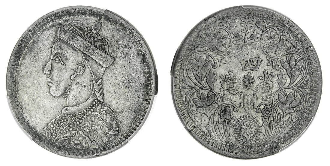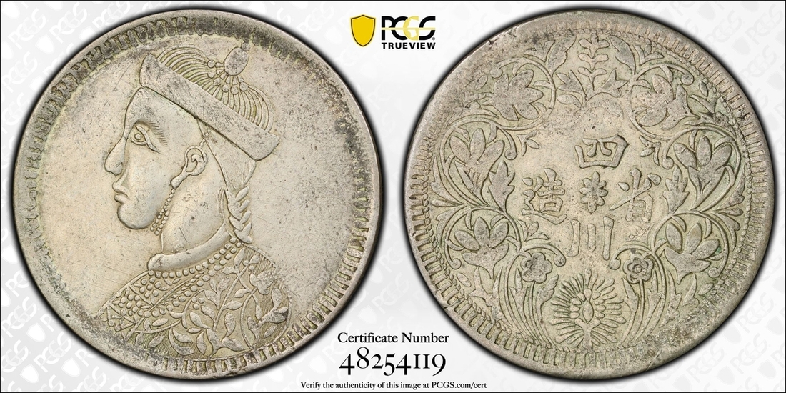 PCGS AU53 | China, issued for Tibet, Szechuan Rupee, (1911-1933), collar type, milled edge, 11h (LM-359), soft to the higher devices, yet with a pleasing light tone, very fine, in PCGS holder, graded AU53 (Cert. #48254119)