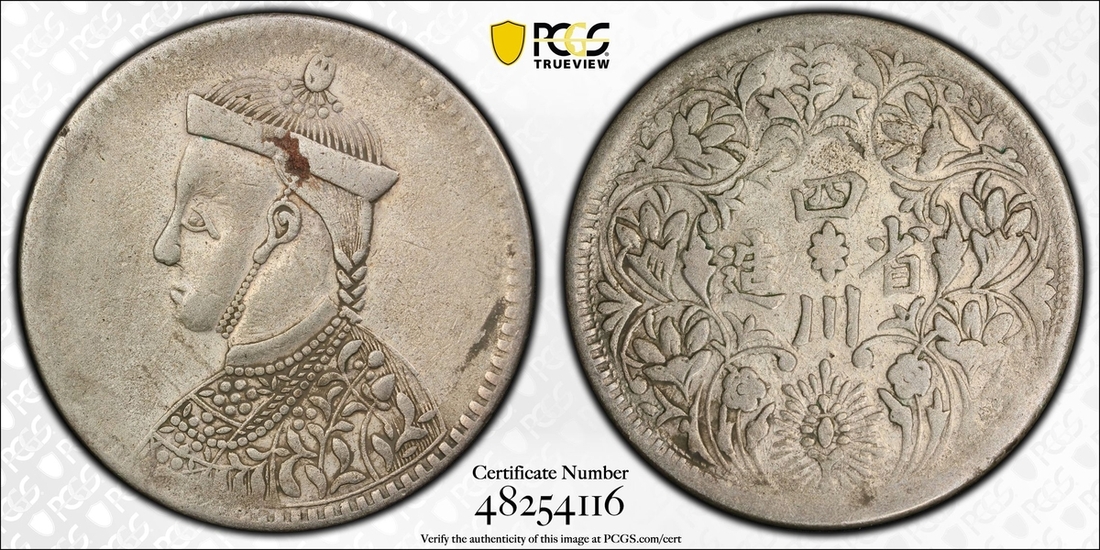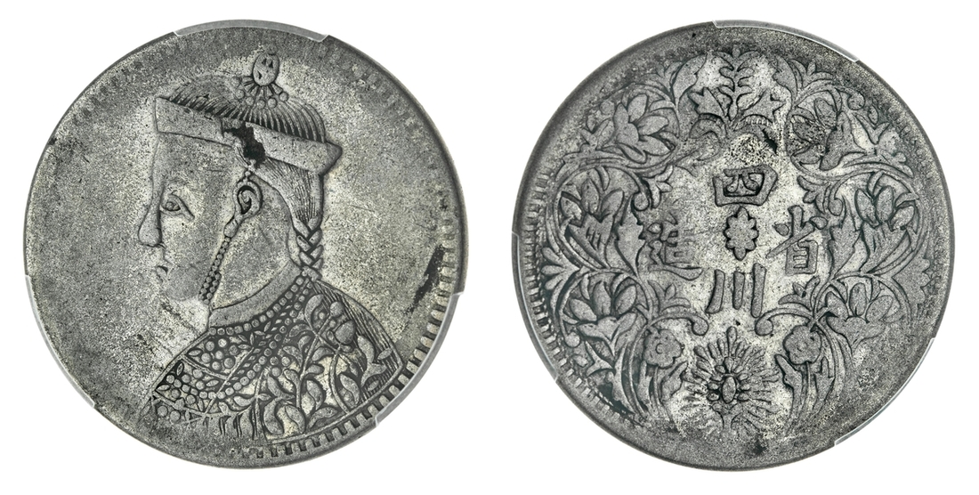 PCGS VF | China, issued for Tibet, Szechuan Rupee, (1911-1933), collar type, milled edge, 11h (LM 359), cleaned and smoothed, otherwise about very fine, in PCGS holder, graded PCGS Genuine ~ Cleaned VF DETAIL (Cert. #48254116); PCGS AU | China, issued for Tibet, Szechuan Rupee, (1911-1933), collar type, milled edge, 11h (LM 359), wiped and lightly contact marked, nonetheless with a pleasing lustre, about extremely fine, in PCGS holder, graded PCGS Genuine ~ Cleaned AU DETAIL (Cert. #48254120) (2)