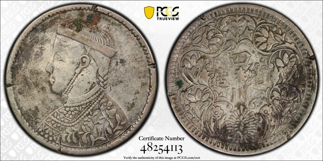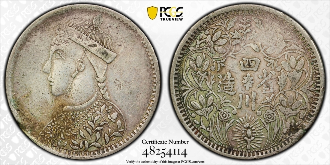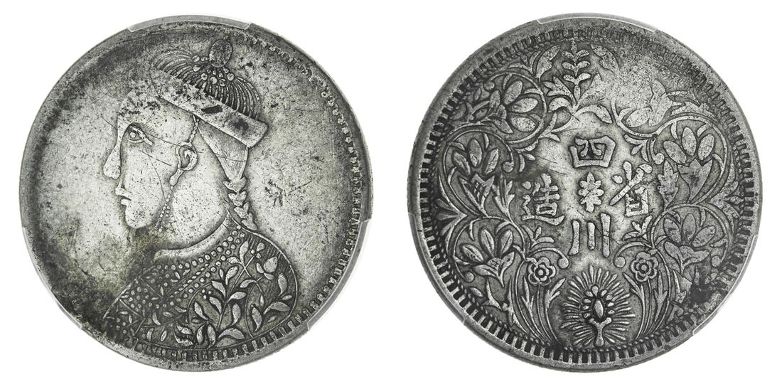 PCGS VF | China, Issued for Tibet, Szechuan Rupee, (1939-1942), collar type, milled edge, 12h (LM-359B), scratched and soft in parts, better to the bust, about very fine, in PCGS holder, graded Genuine ~ Scratch VF DETAIL (Cert. #48254114); PCGS VF | China, issued for Tibet, Szechuan Rupee, (1939-1942), collar type, milled edge, 1h (LM 359B), graffiti to the reverse, smoothed and with an irregular tone, about very fine, in PCGS holder, graded PCGS Genuine ~ Graffiti VF DETAIL (Cert. #48254113) (2)