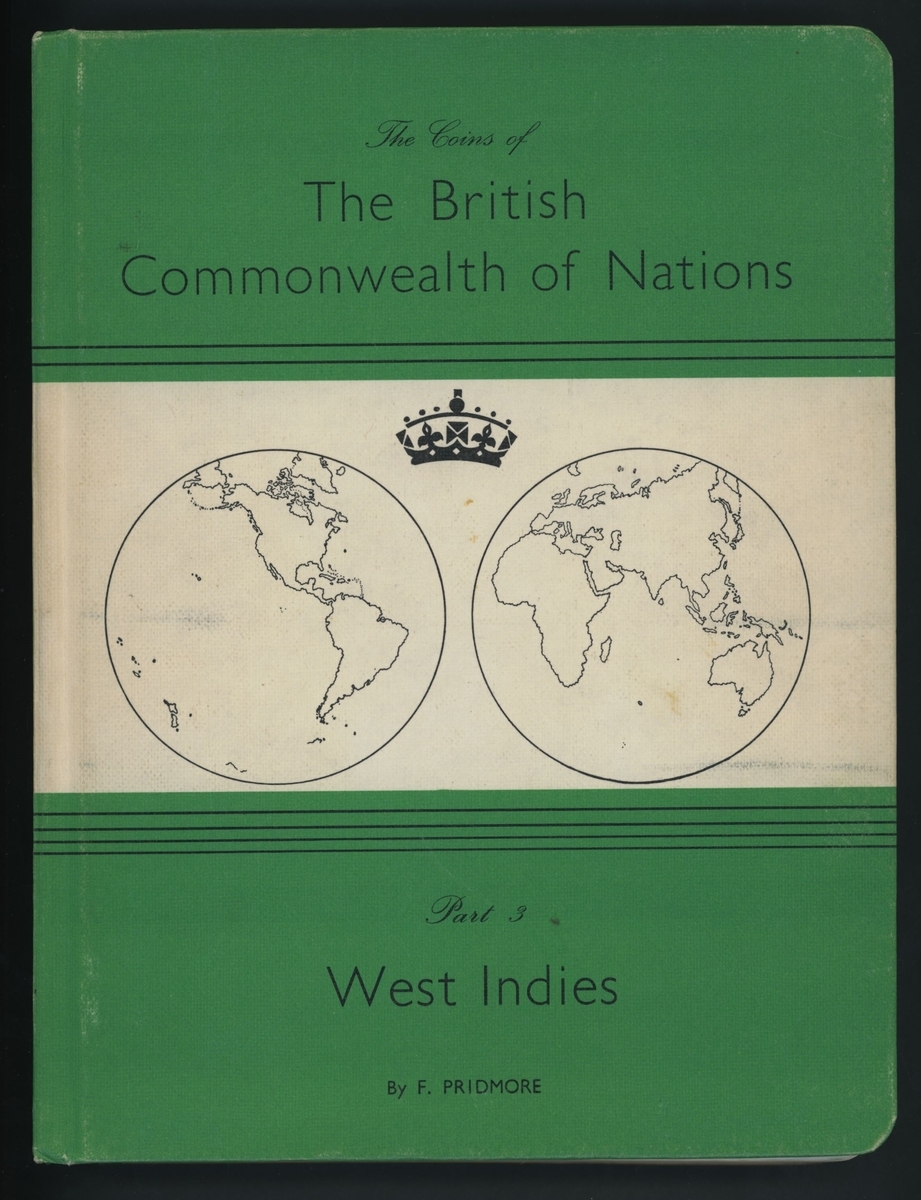 Pridmore, F., The Coins of the British Commonwealth of Nations: Part 3, West Indies, Spink & London, London, 1965, hard back and illustrated, consisting of 364 pages, light signs of use to the cover, otherwise the pages much as issued, in full working order, with official valuation list of August 1966