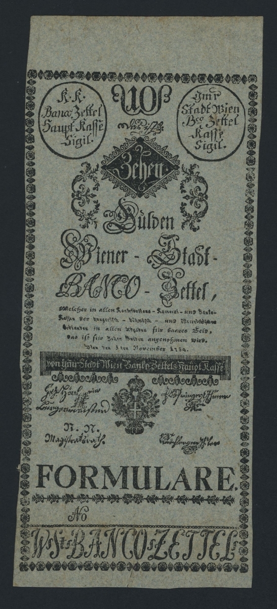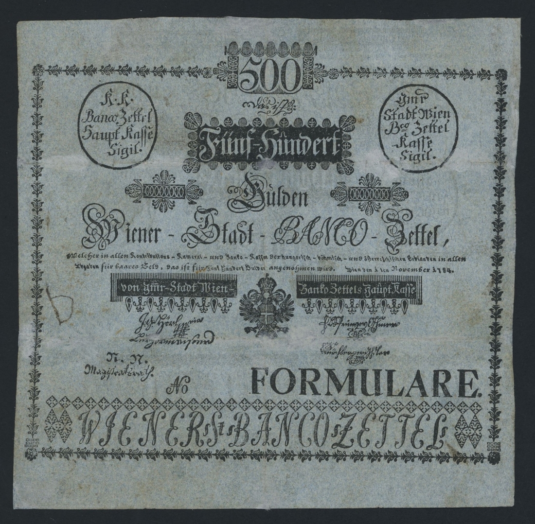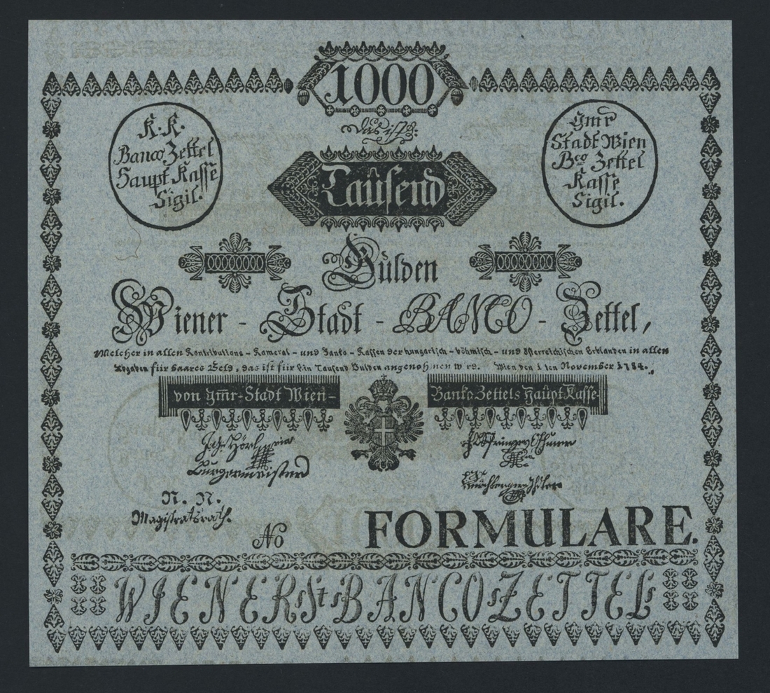 [3 Notes] Wiener Stadt-Banco, Austria, 10 Gulden, 500 Gulden, 1000 Gulden, 1st November 1784, "Formulare" notes,