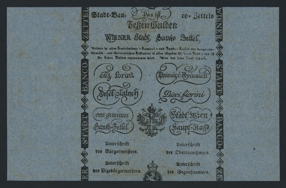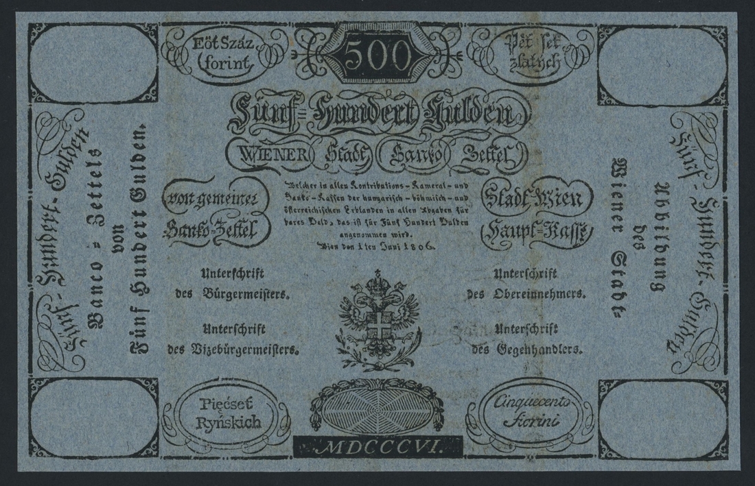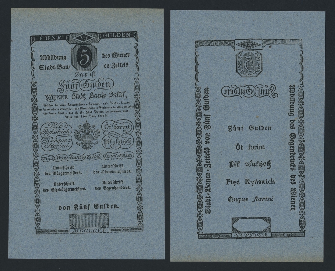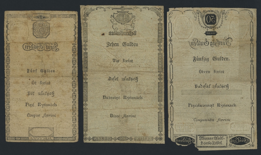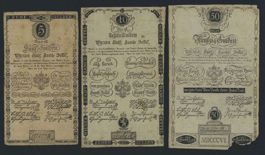 [6 notes], Wiener Stadt-Banco, Austria, 5, 10, 50 & 500 Gulden notes, 1st June 1806 Issue,