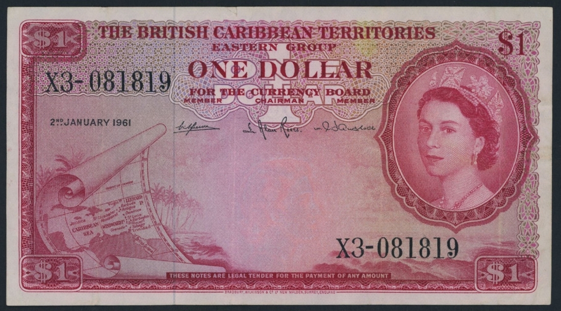 (x) The British Caribbean Territories, $1, 2nd January 1961, serial number X3-081819, (Pick 7, BNB 107), very fine, stain to obverse